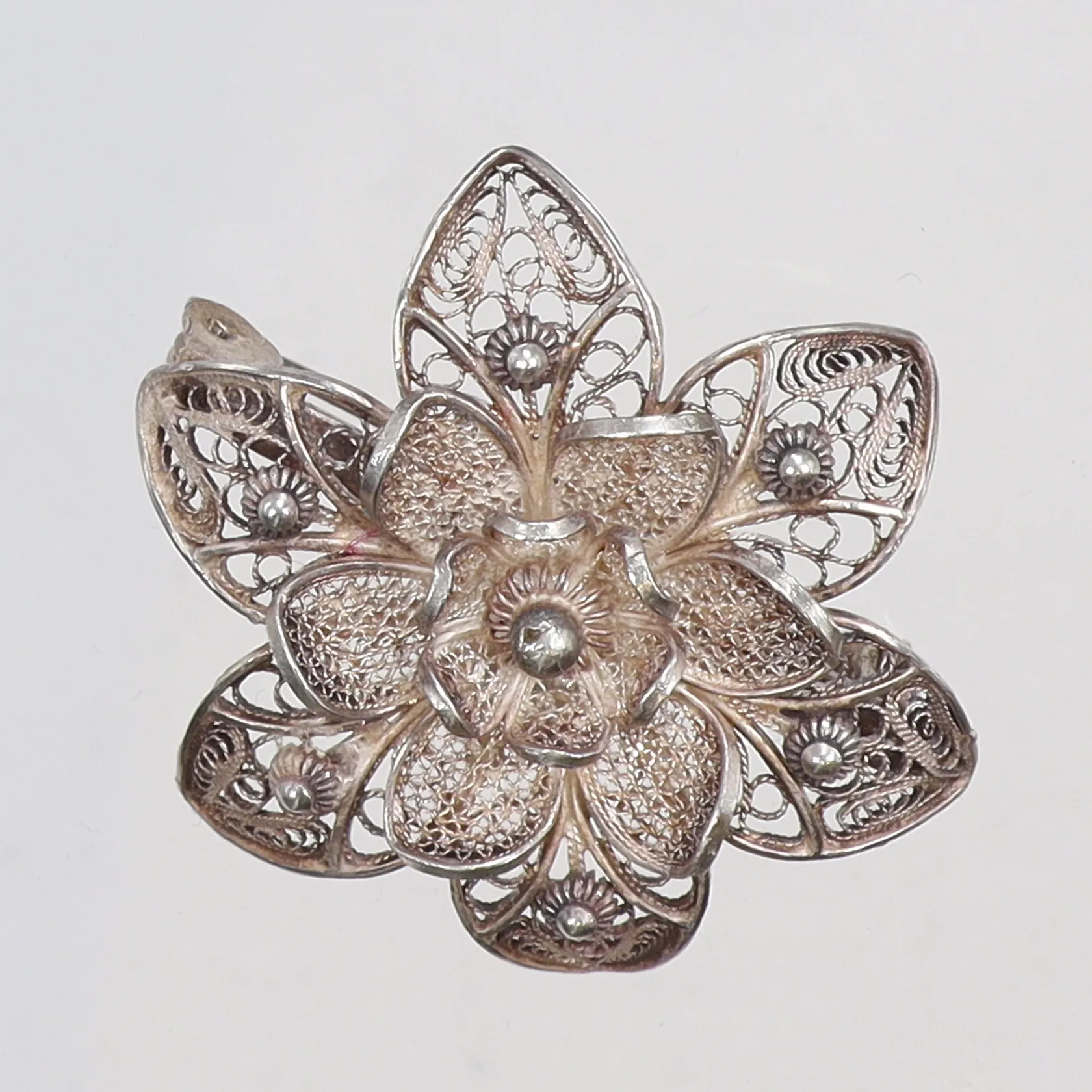 Brosch i form av blommar, filigranarbete, Ø35mm, silver, 800/1000 Vikt: 7,1 g.