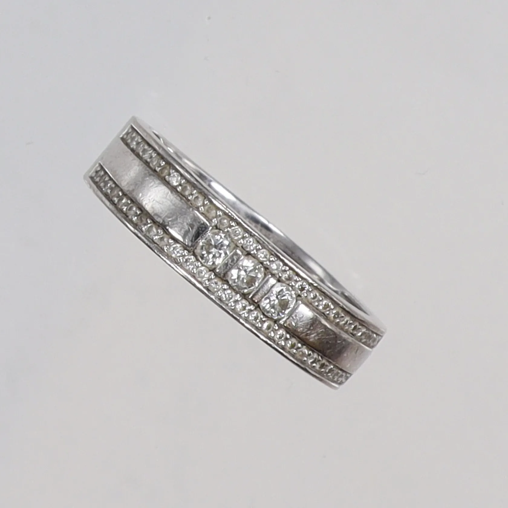 Ring i vitguld med diamanter 3xca0,05ct samt 52xca0,005ct stl 19 bredd 5mm GHA 18K Vikt: 5,6 g.