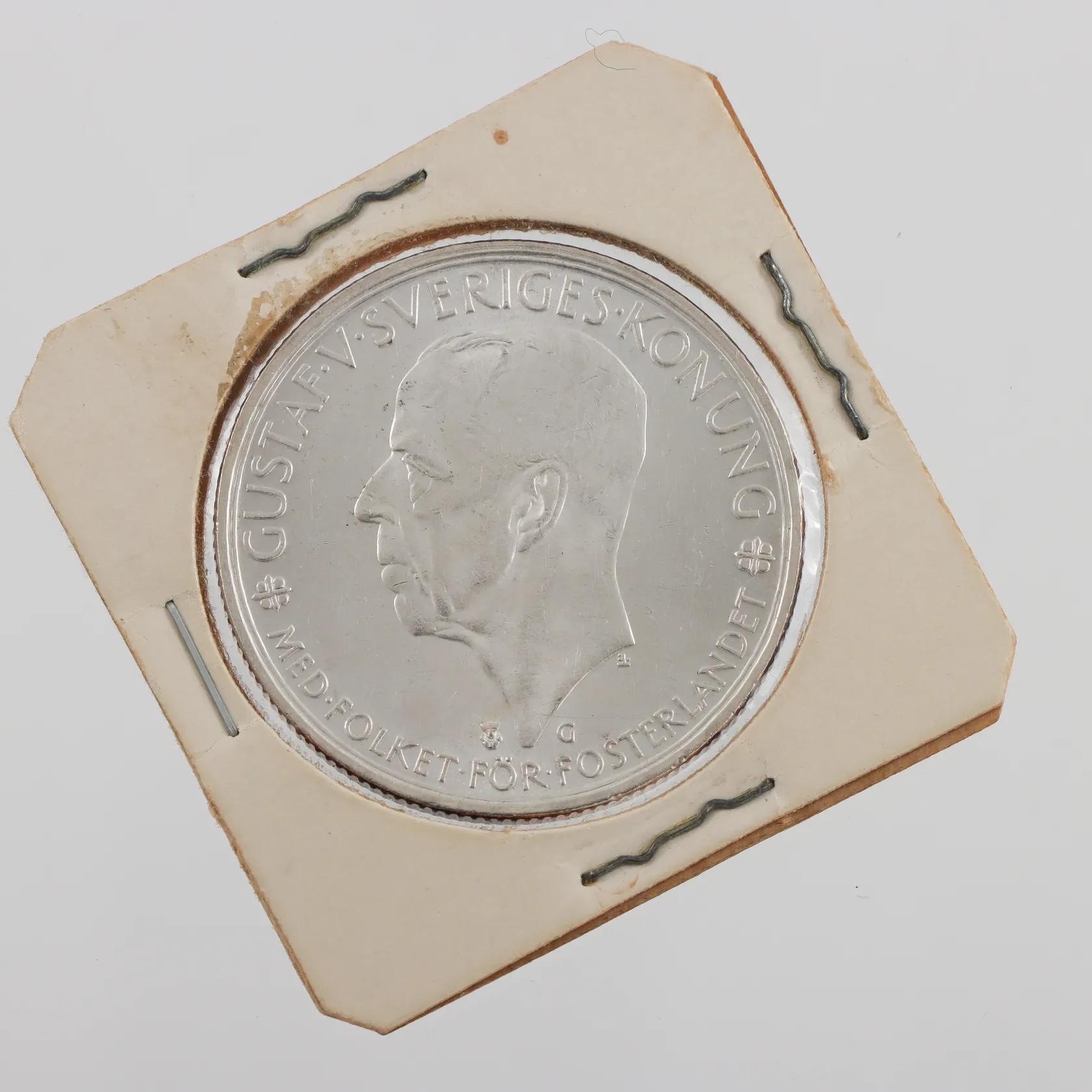 Minnesmynt, Gustaf V Sveriges Konung, Med folket för fosterlandet, Sveriges Riksdag 1435-1935, nominellt värde 5kr. 900/1000 Vikt: 25 g.