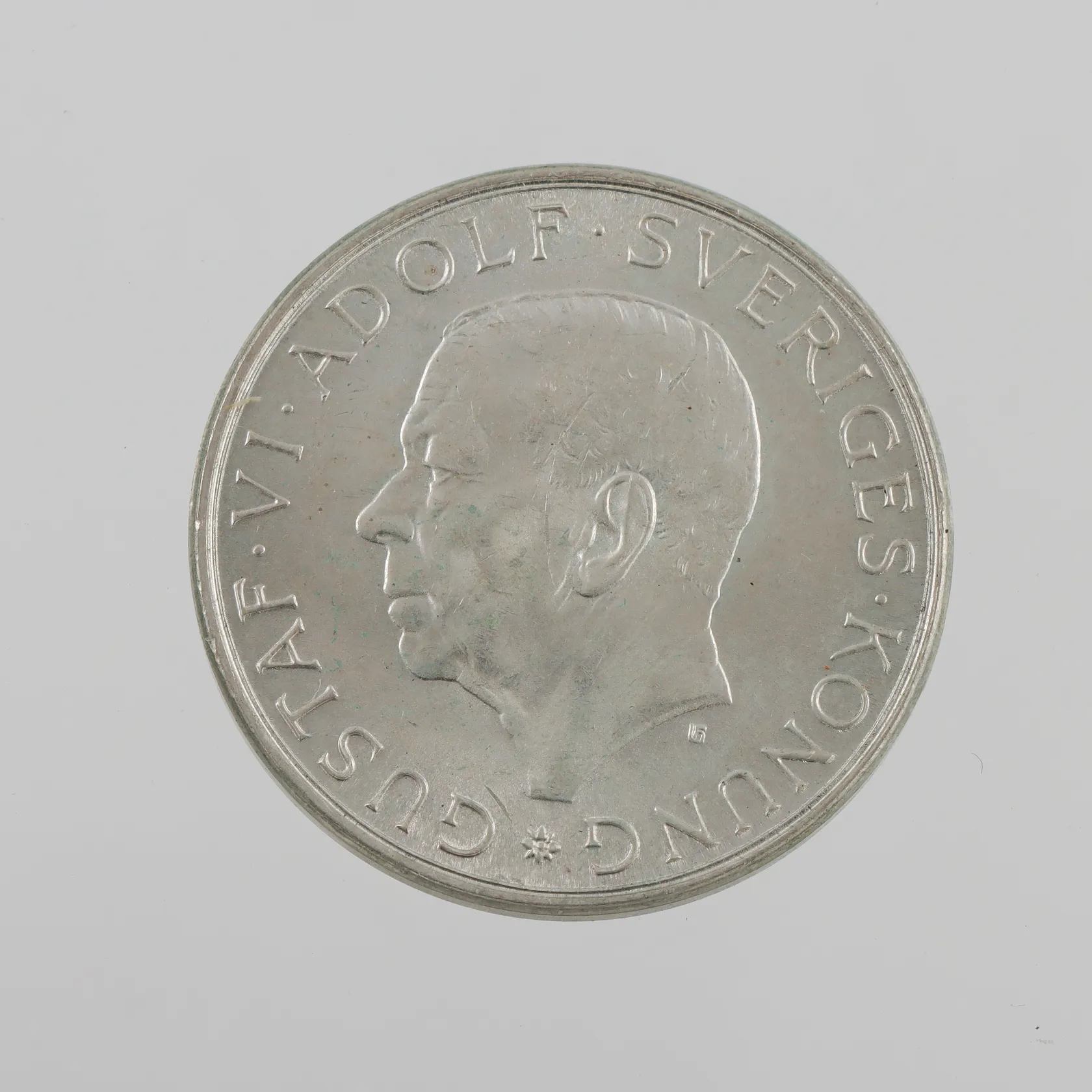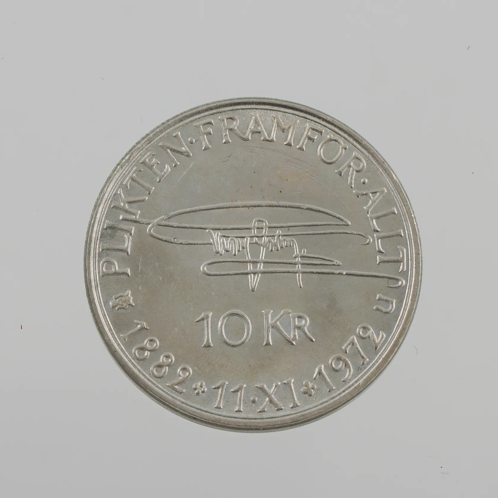 Mynt Gustaf VI Adolf, plikten framför allt, 1882-1972, nominellt värde 10kr, 835/1000 Vikt: 18 g.