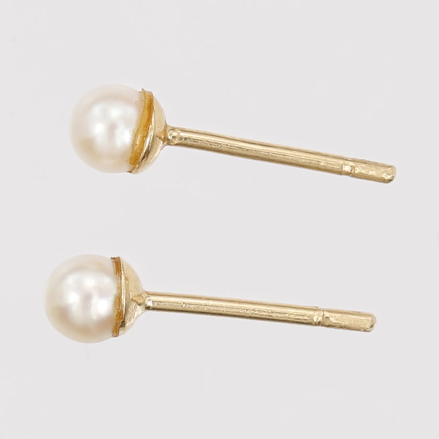 Ett par örhängen med odlade saltvattenpärlor, Ø4mm, snurrebussar i plast medföljer, 18K guld. Vikt: 0,6 g.