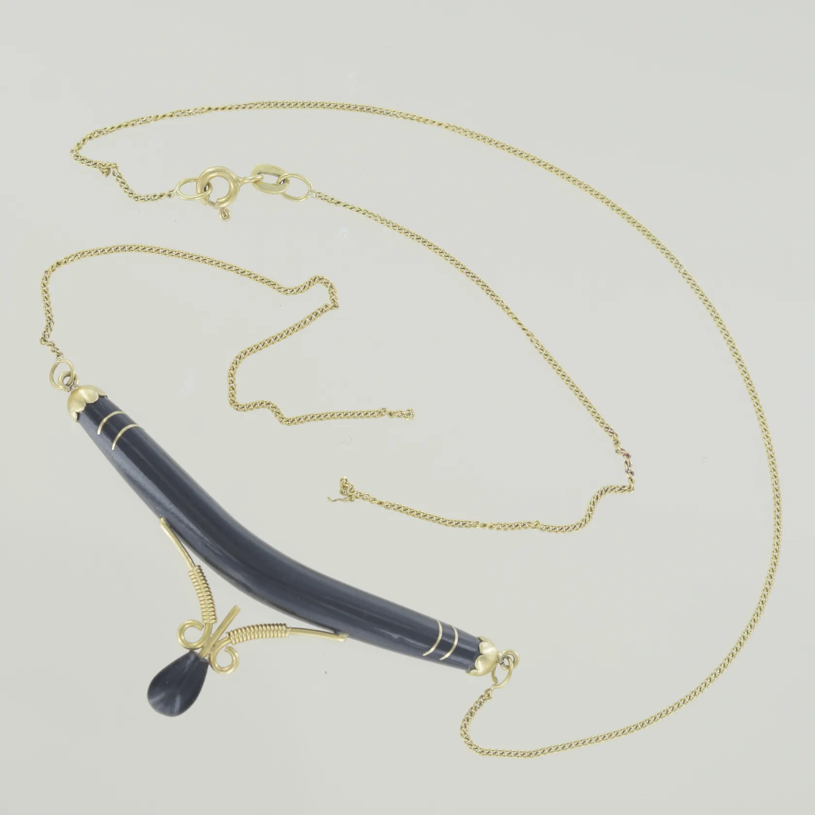 Collier med plast detaljer, längd 47 cm 18K, defekt, bv 5,5 gr Vikt: 5,5 g.