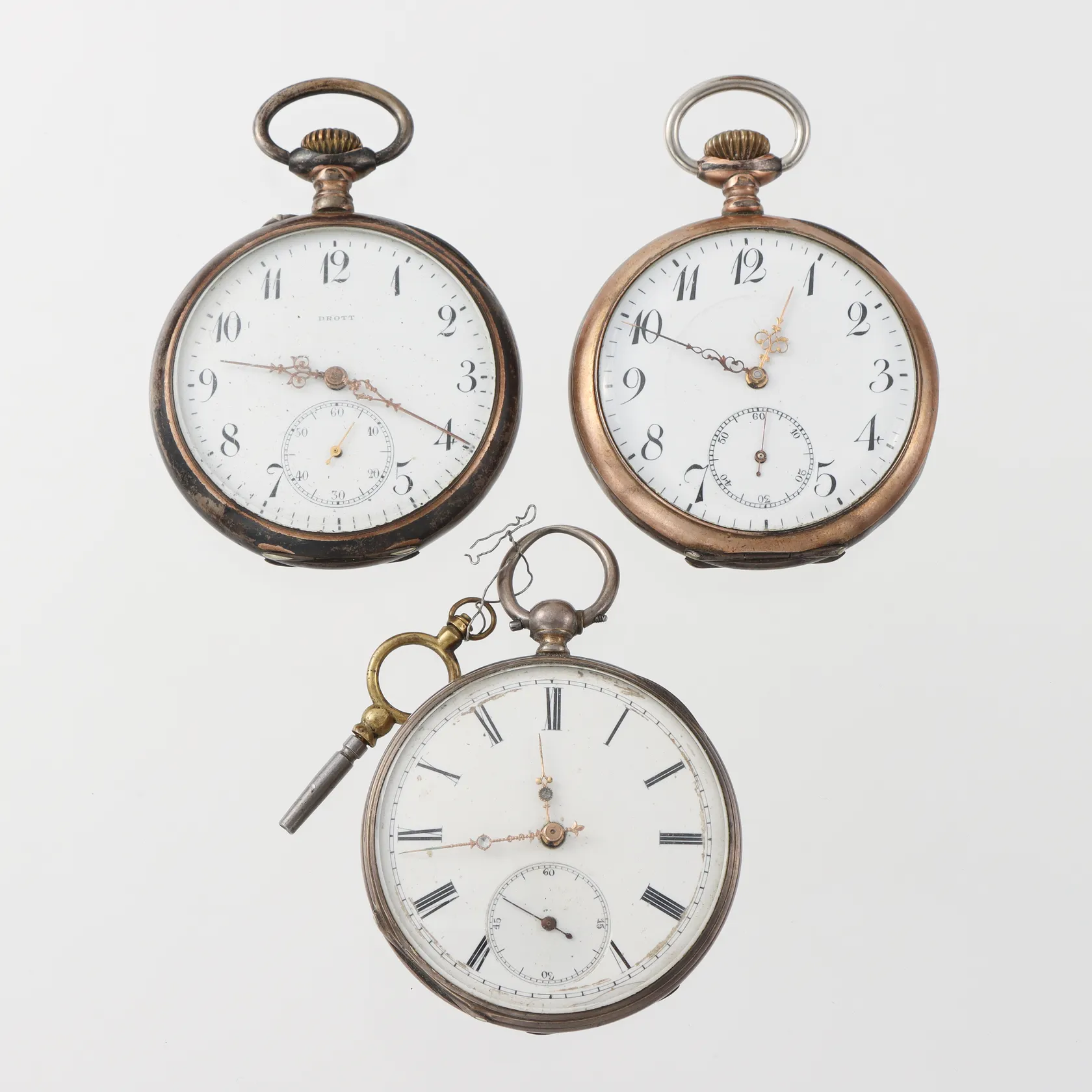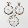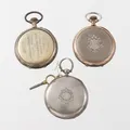 Fickur 3 st, 2 st silver 1 st saknar baklock, diameter ca 5 cm, ej funktionstestade.