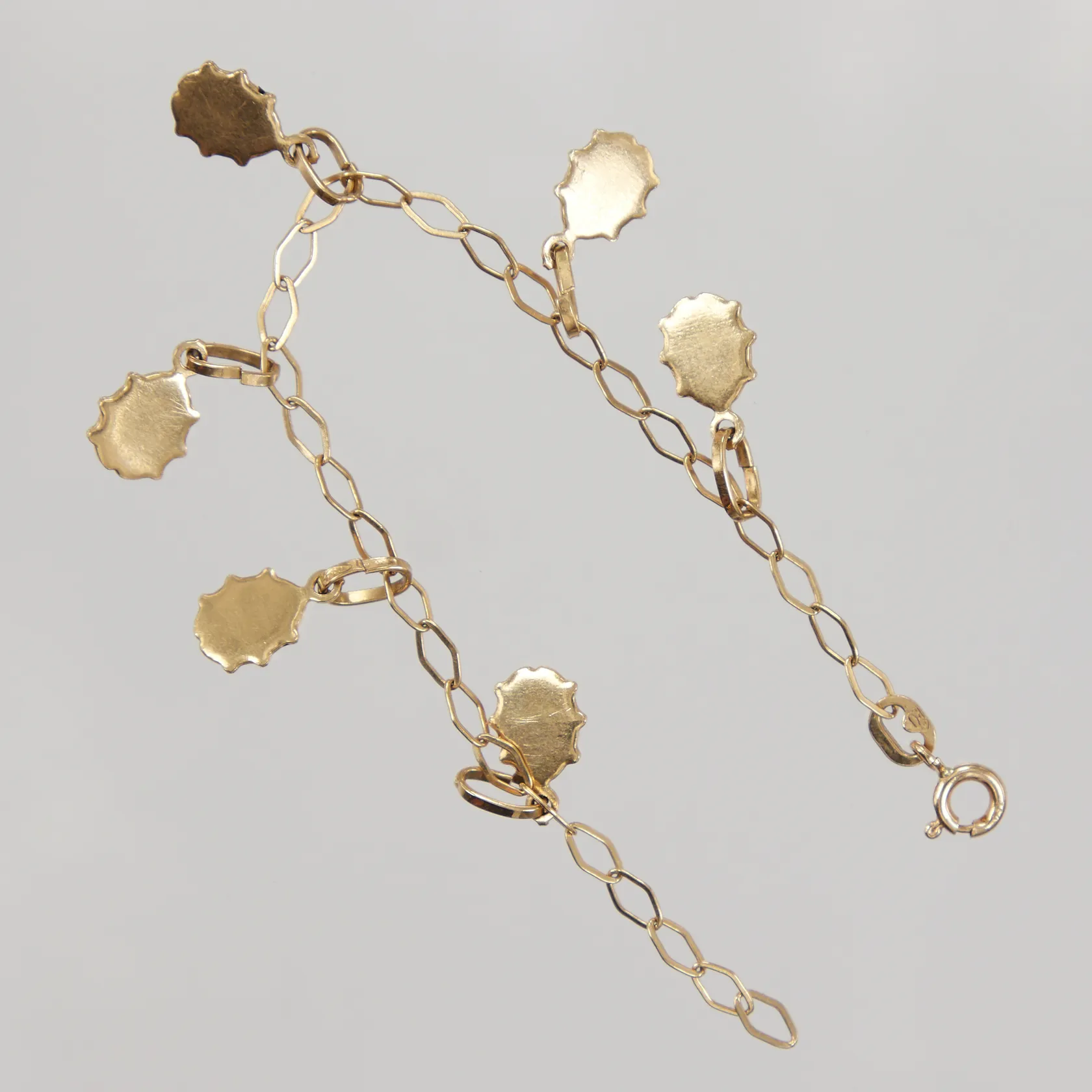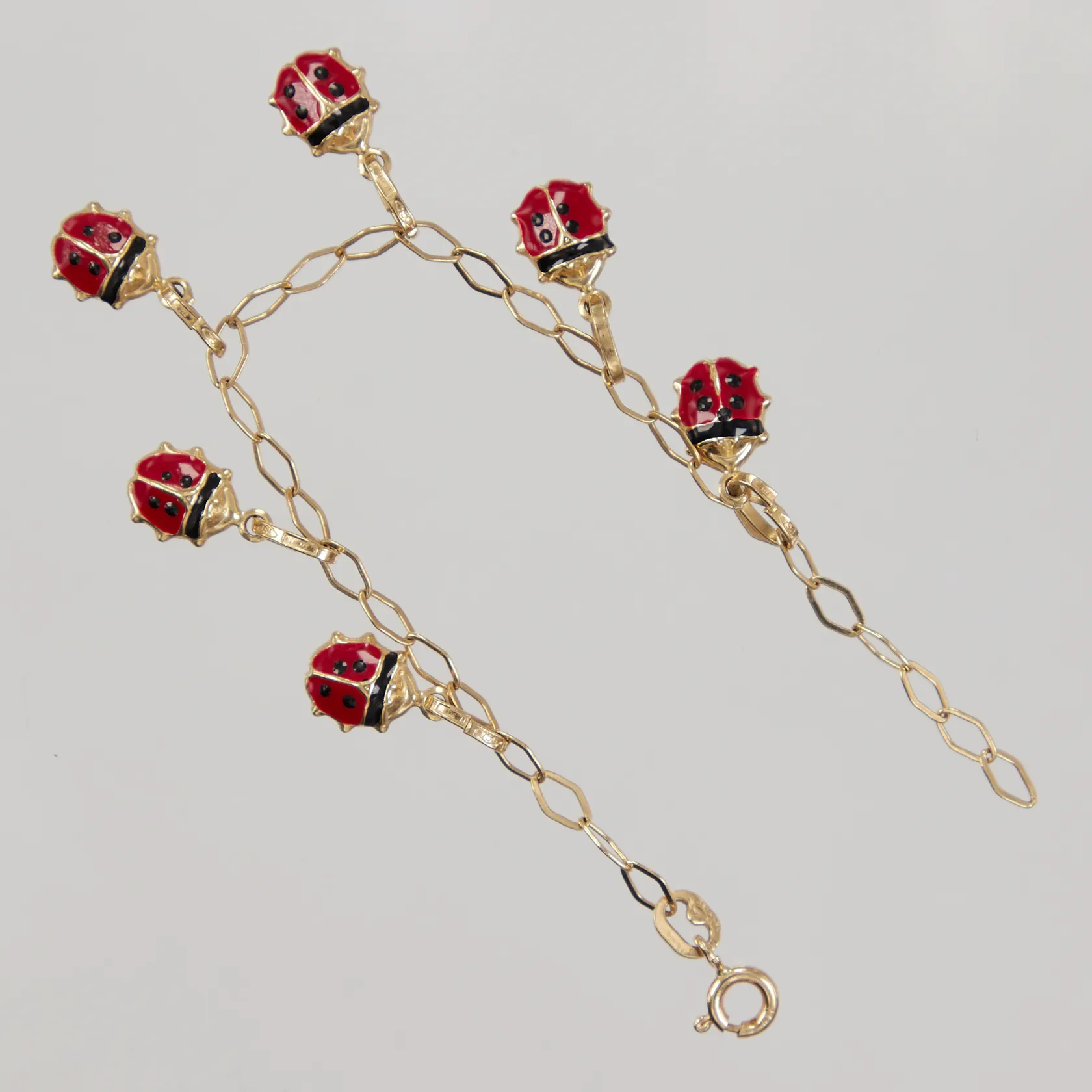 Armband med 6 berlocker Nyckelpigor med emalj, 15,5cm, bredd 3,2mm, berlocker ca 8x18mm, 18K Vikt: 5,5 g.