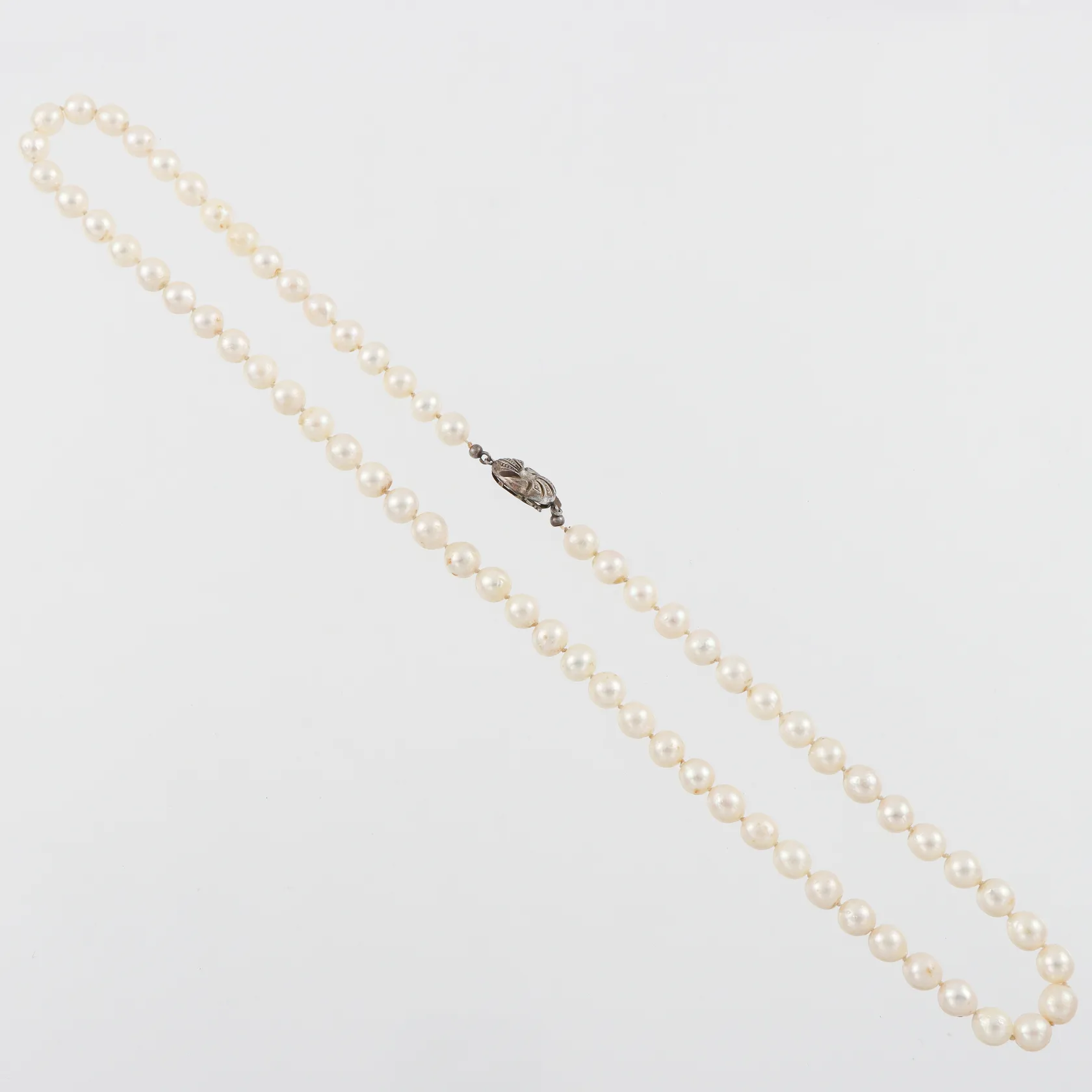 Collier odlade pärlor, längd ca 59 cm,pärlornas diameter ca 7 mm, 835/1000, silverlås.