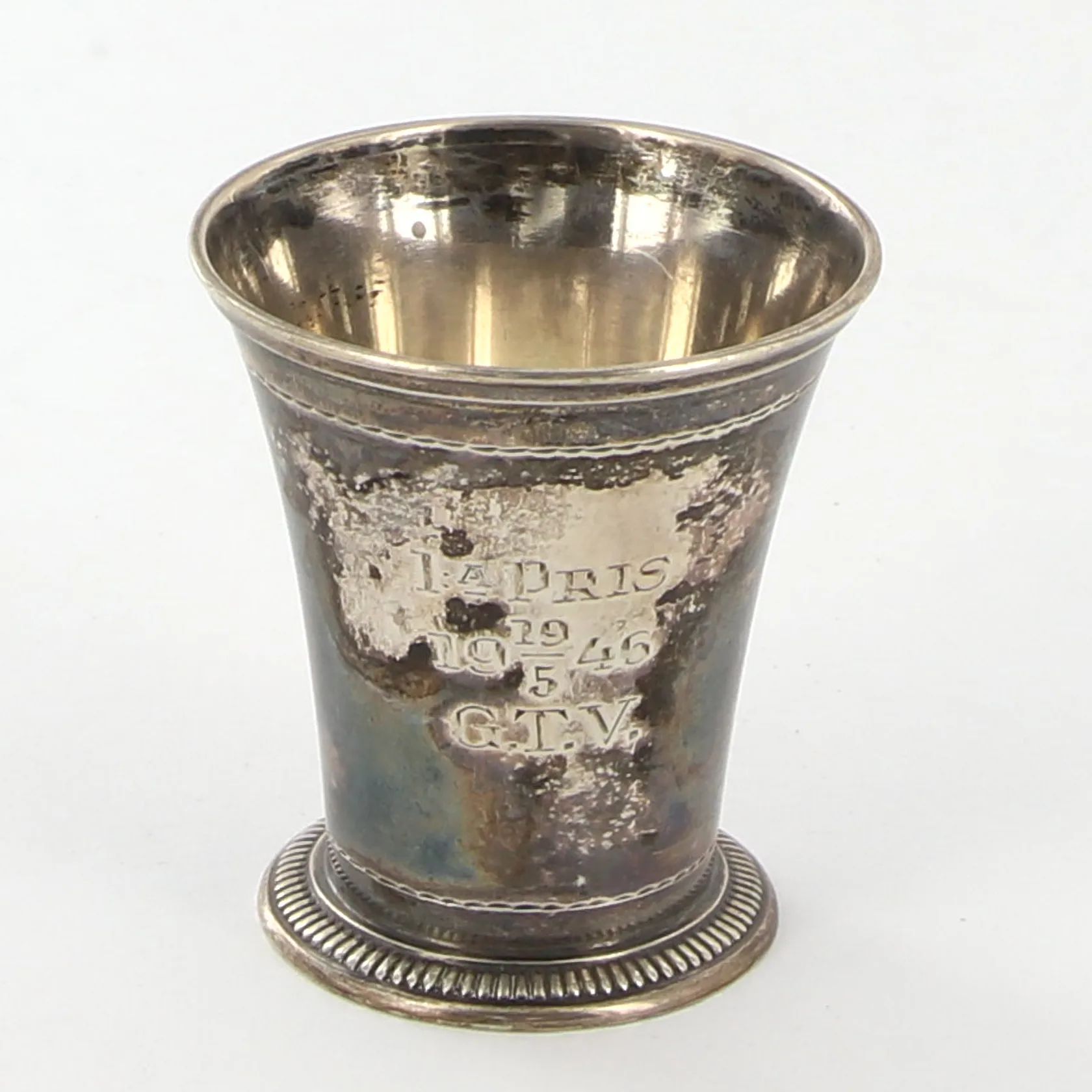 Pokal, höjd ca 5cm, gravyr, 830/1000 Vikt: 28,4 g.