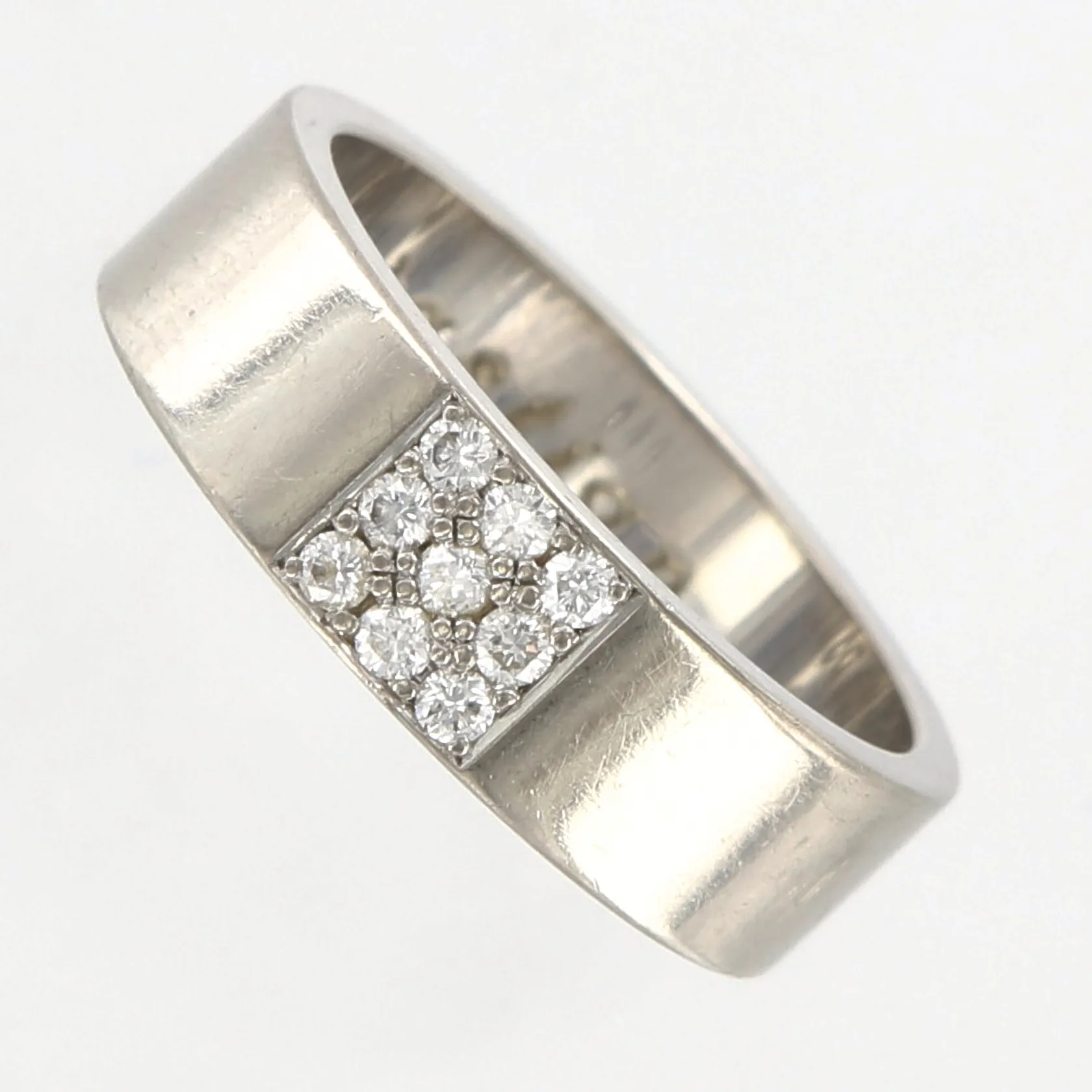 Ring Engelbert, vitguld med 9 diamanter ca 0,18ctv, stl 17¼, bredd: 6mm, gravyr, 18K, ask i box medföljer Vikt: 7,4 g.