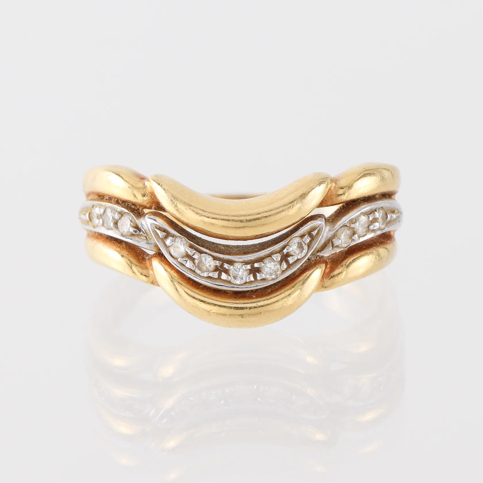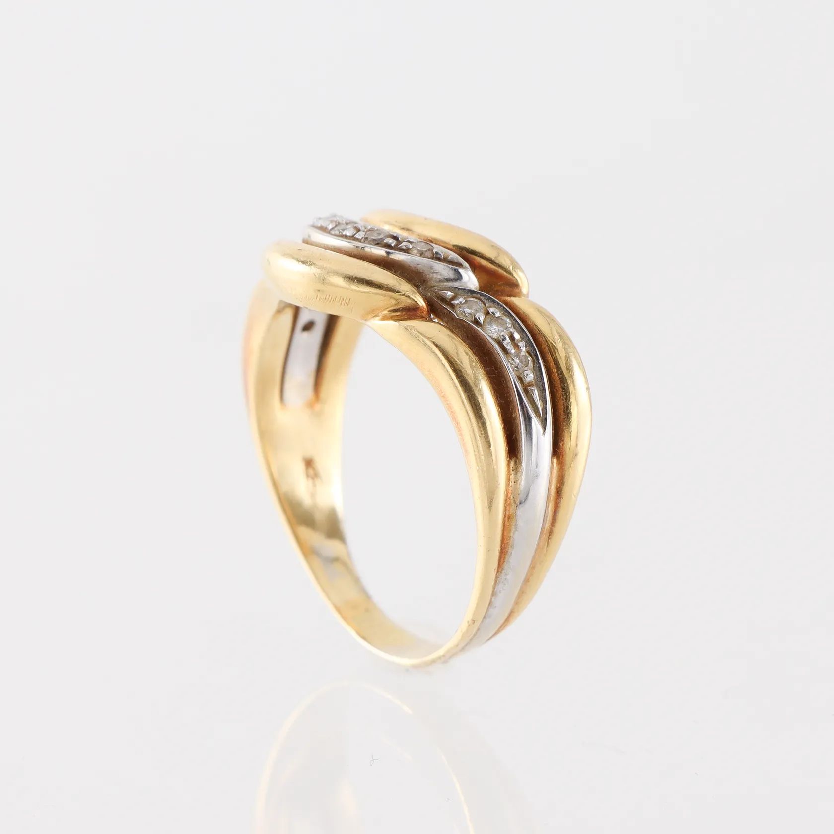 Ring med diamanter ca 11x0,015ct, Italien, storlek 18 ½ mm, bredd 2.8-9.8 mm, 18k. Vikt: 7,5 g.