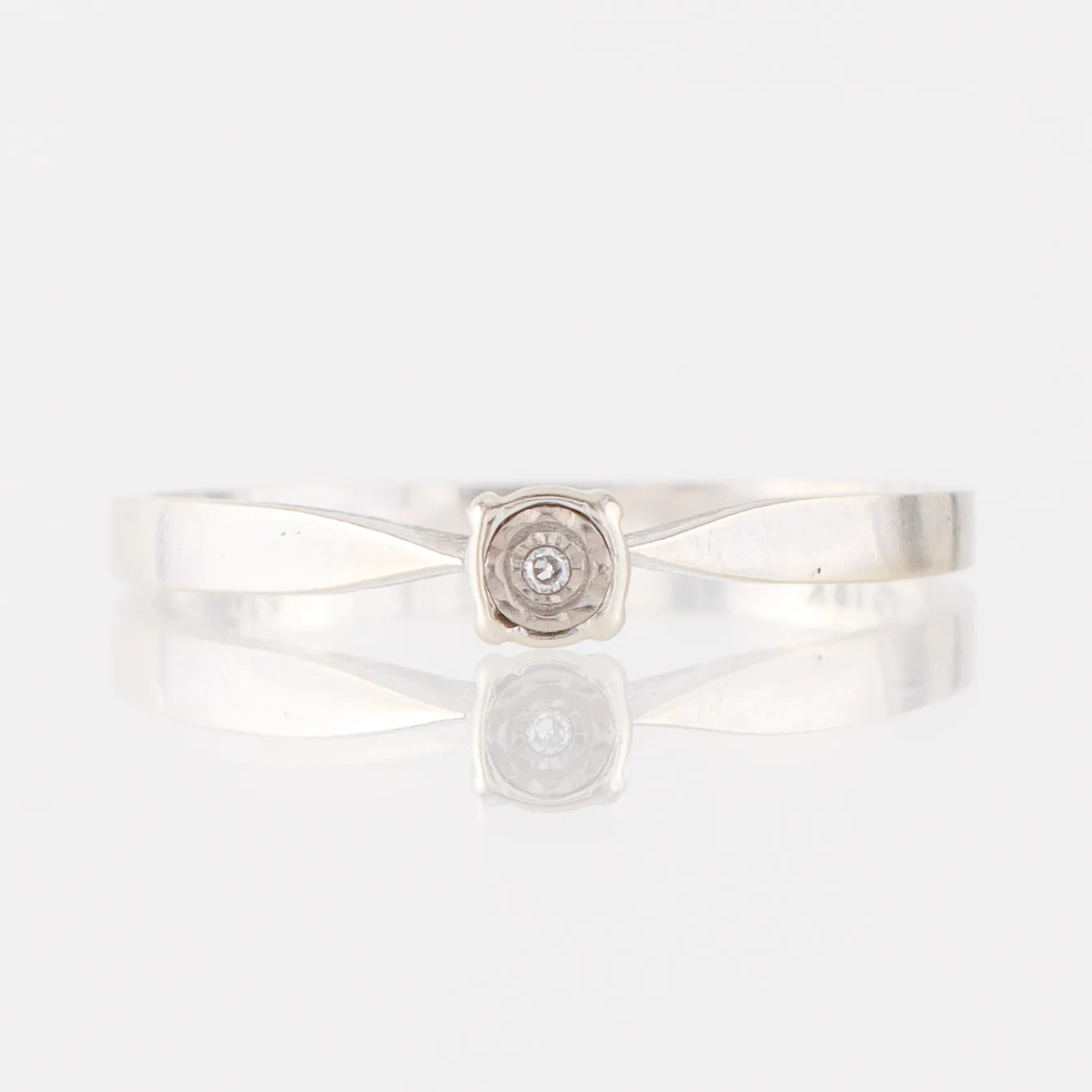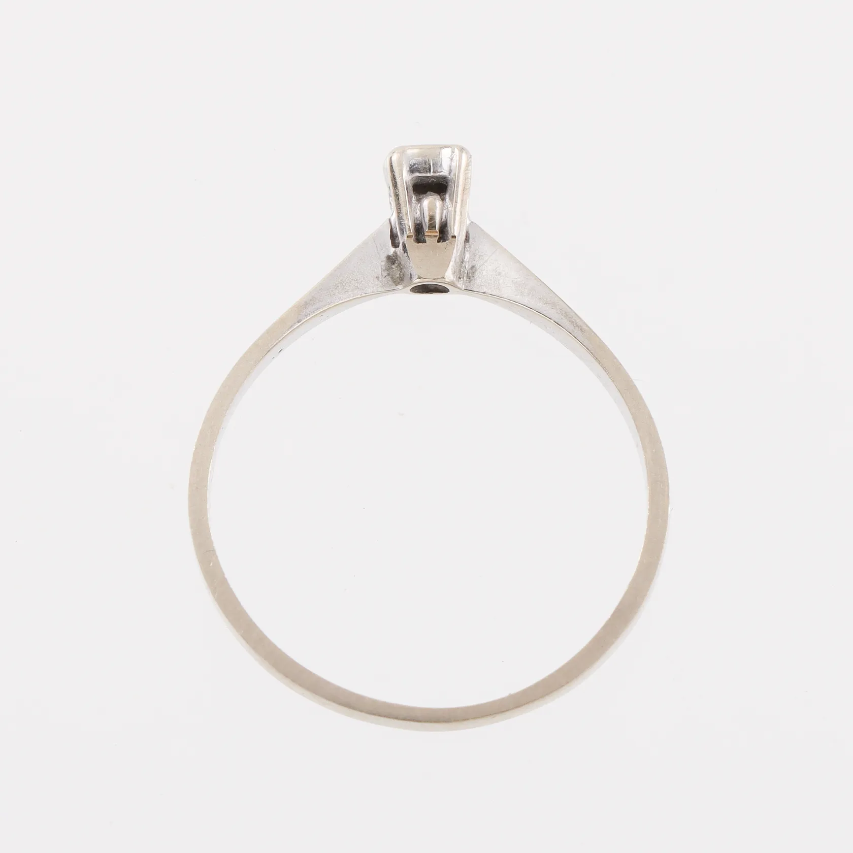 Ring vitguld med sten, storlek 17 ¾ mm, bredd 1.5-3.1 mm, 18k. Vikt: 1,7 g.