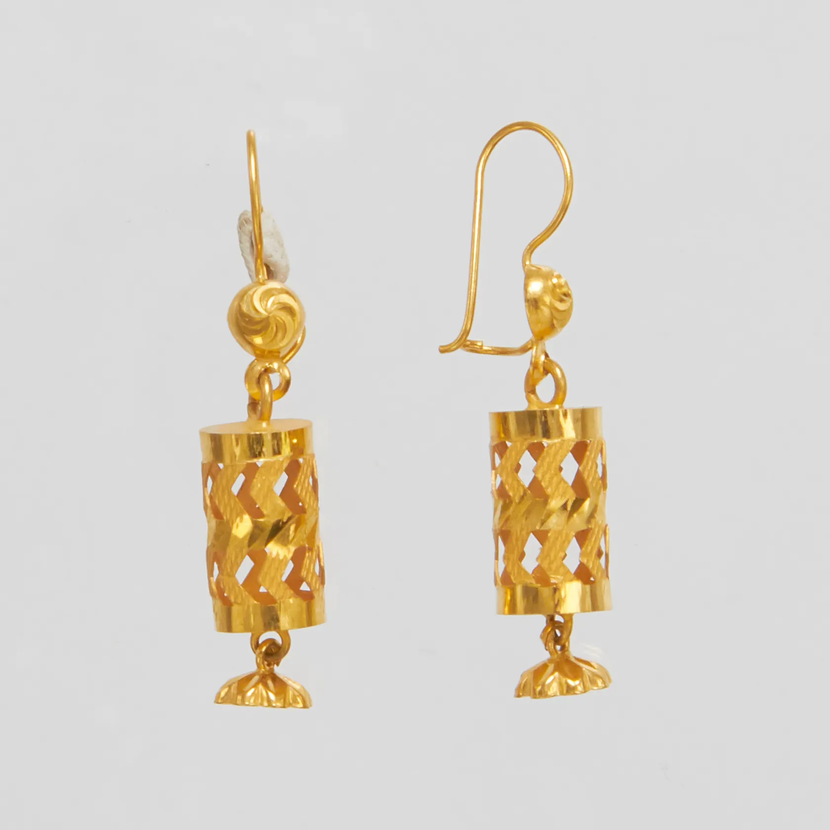 Ett par örhängen, längd ca 38mm, bredd 7,5mm, 21K Vikt: 3,1 g.