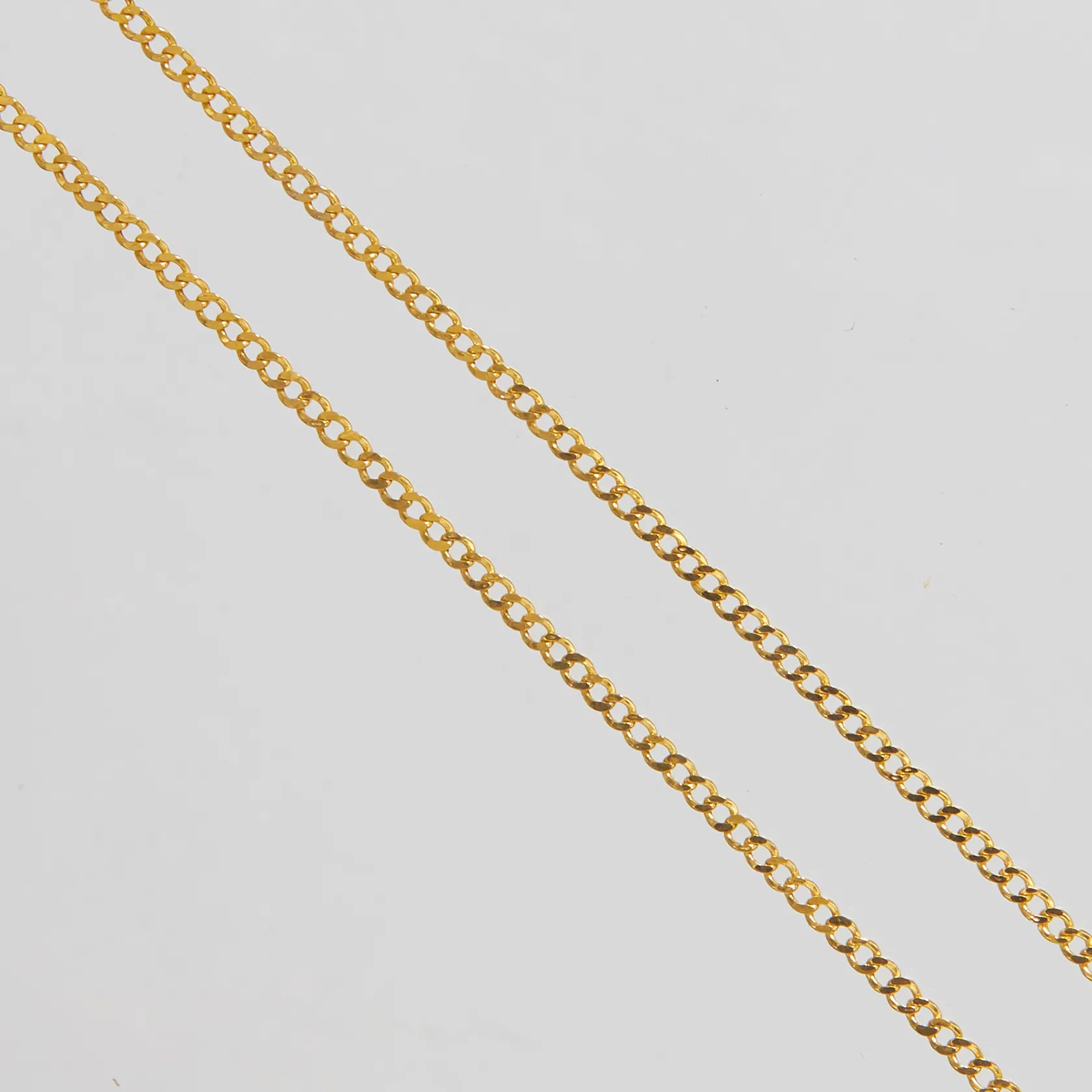 Kedja manglad pansar, längd ca 49,8cm, bredd 2mm, ojämnheter, 21K Vikt: 2,4 g.