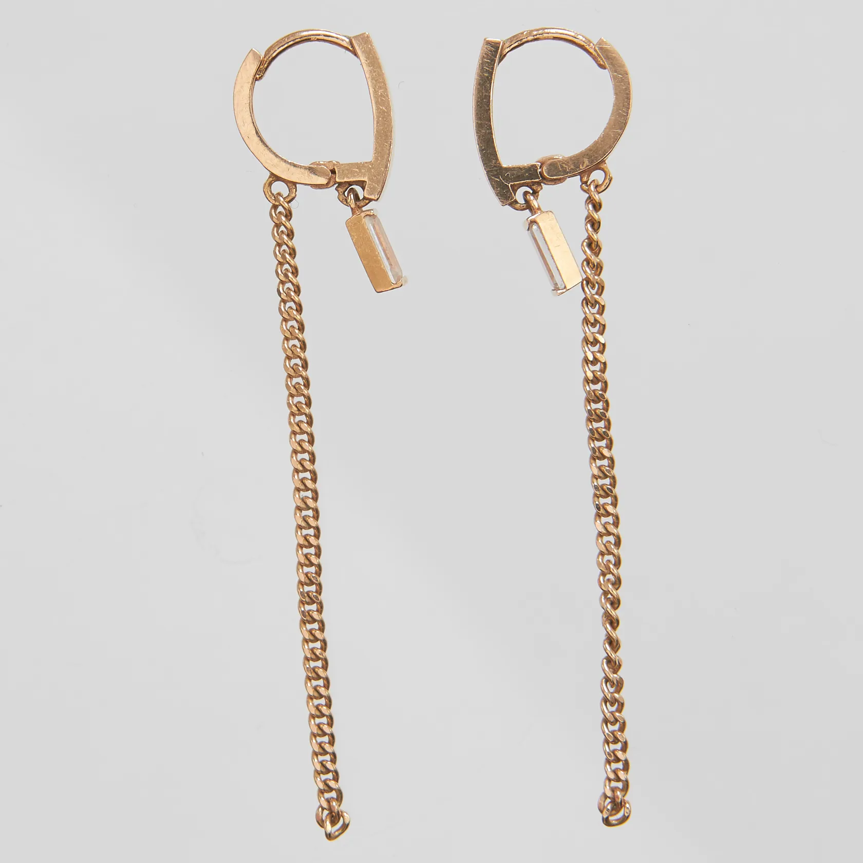 Örhängen med vita stenar, längd: 50mm, roséguld, 14K Vikt: 2 g.