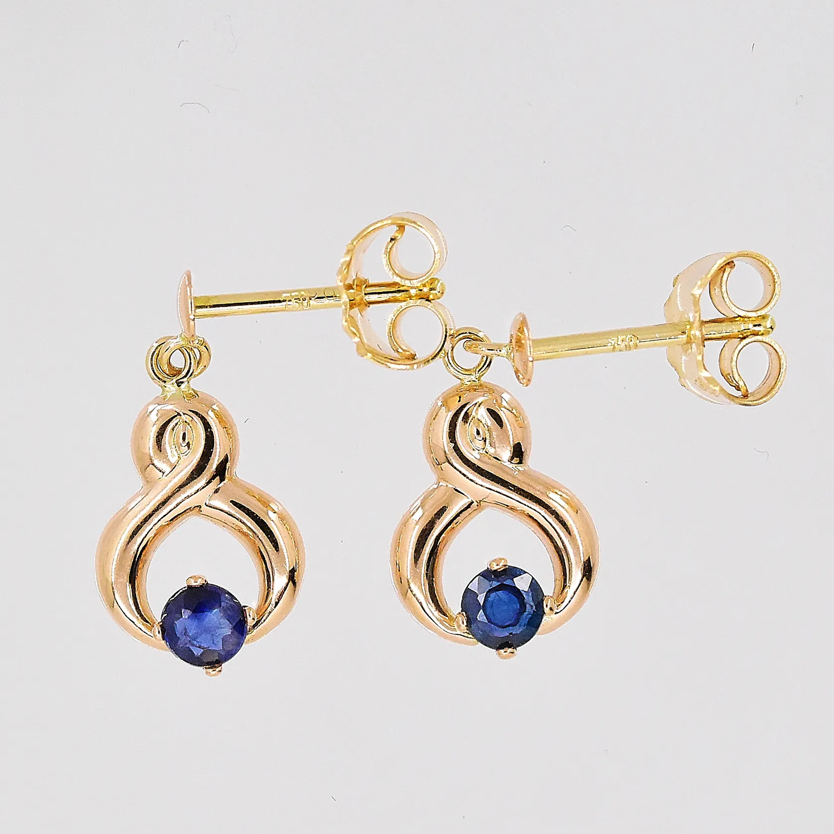 Ett par örhängen med blå sten, längd 16mm, 18K Vikt: 1 g.