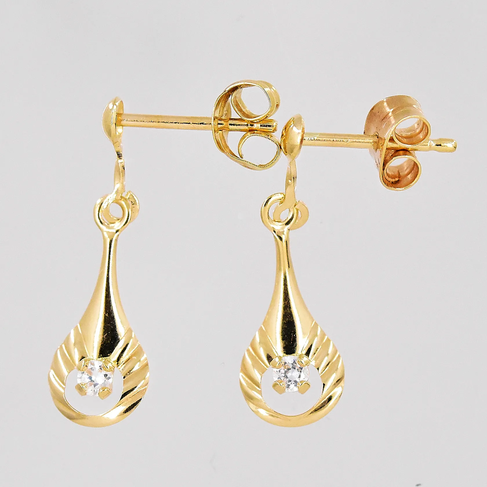 Ett par örhängen med vit sten, längd 19mm, 18K Vikt: 0,7 g.