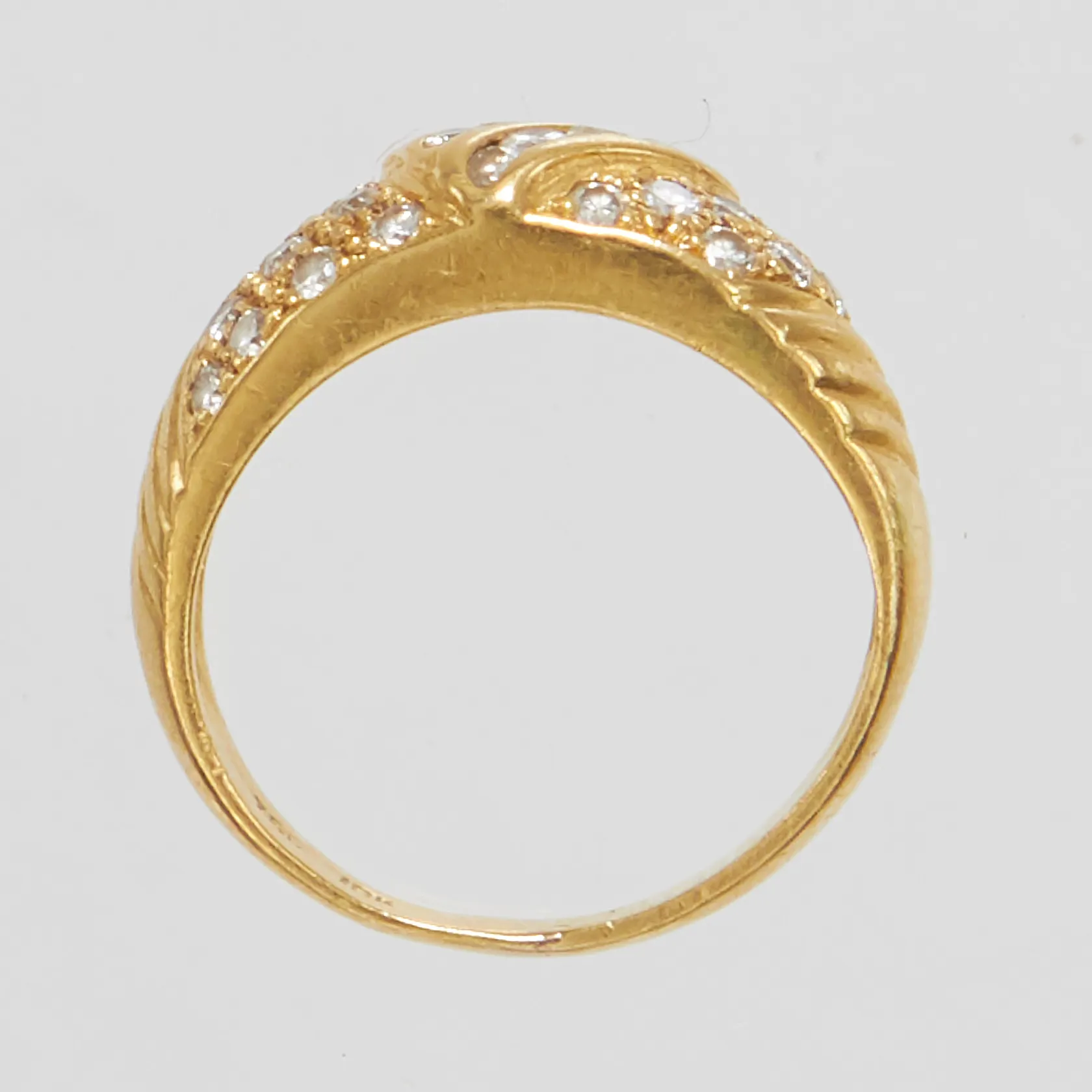 Ring med diamanter 30 x ca 0,01-0,02ct, stl15, bredd 2-6,5mm, 18K Vikt: 3,5 g.