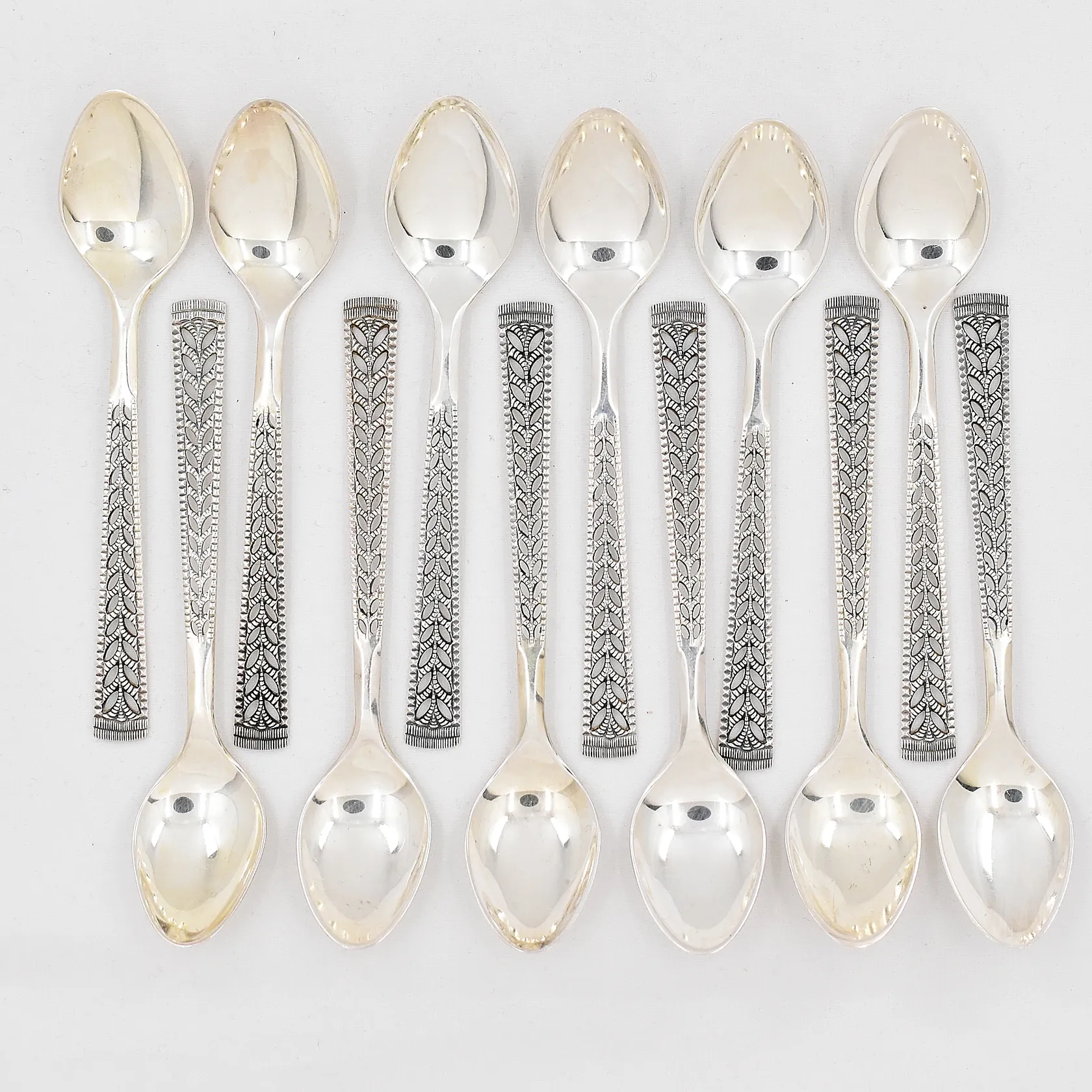 12 Kaffeskedar, modell Juvel, längd: 11cm, silver 830/1000 Vikt: 114 g.
