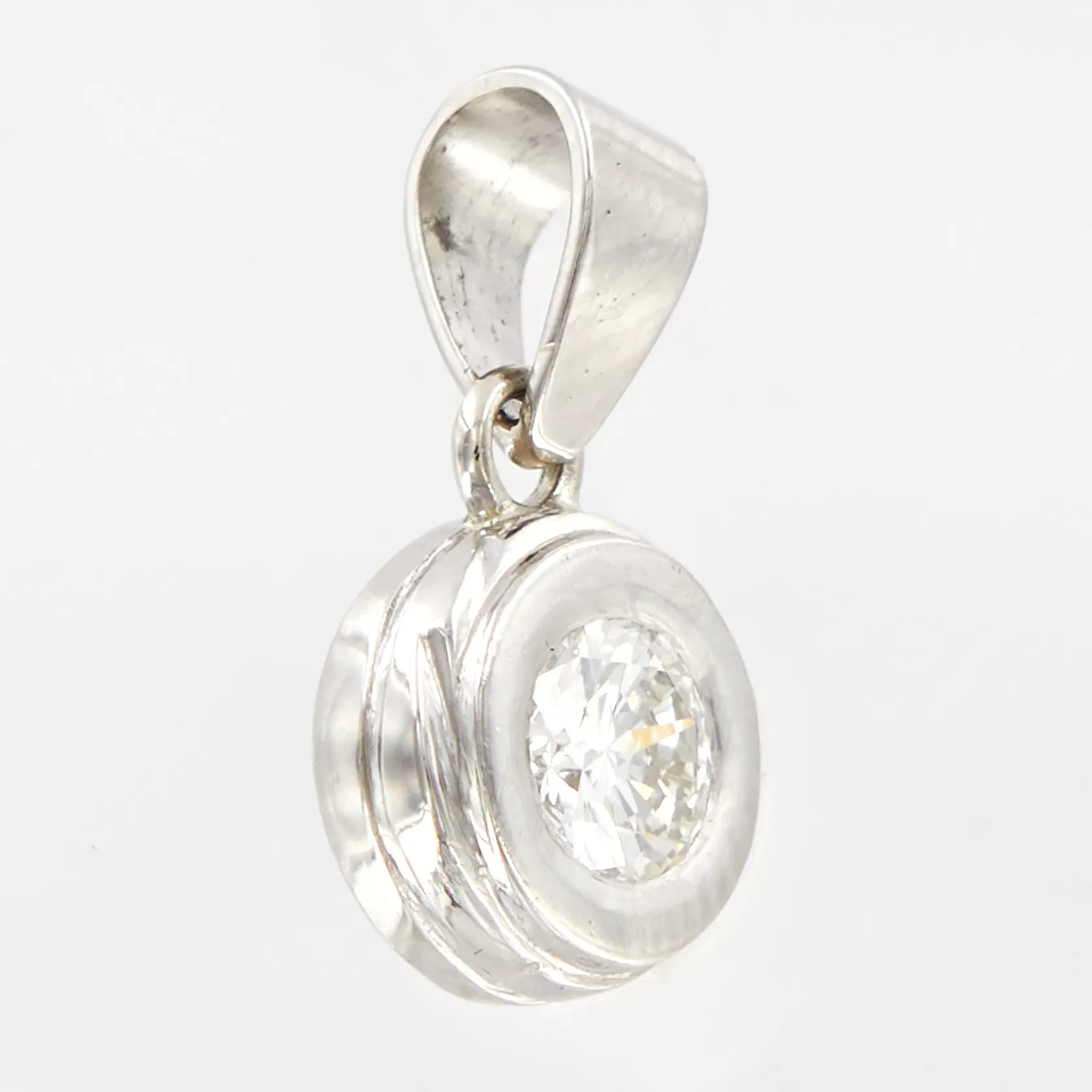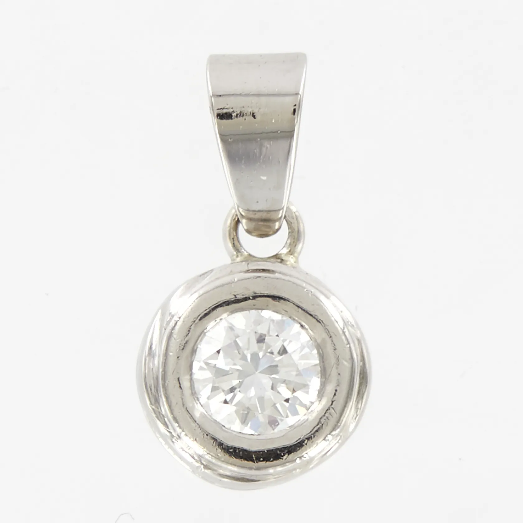 Hänge med diamant ca 0,48ct G-H/SI, ca 15mm, inklusive ögla, platina 900/1000. Finns för visning på Pantbanken Skärholmen Vikt: 3 g.