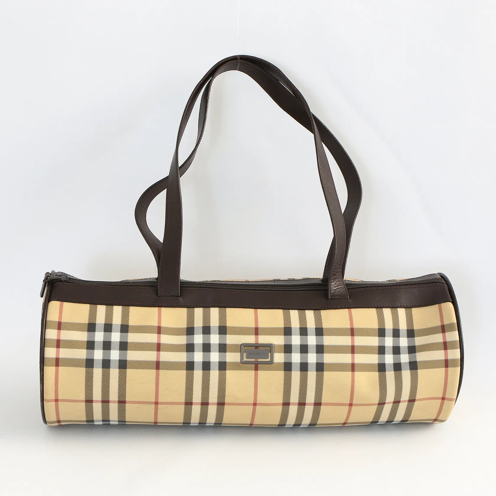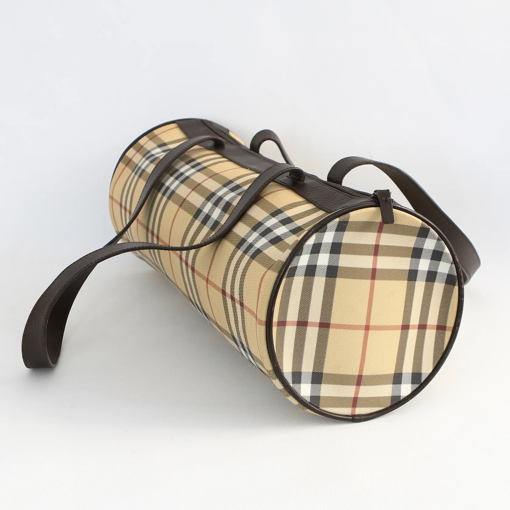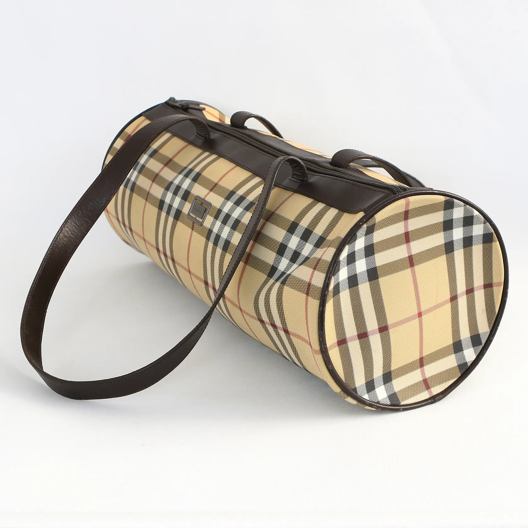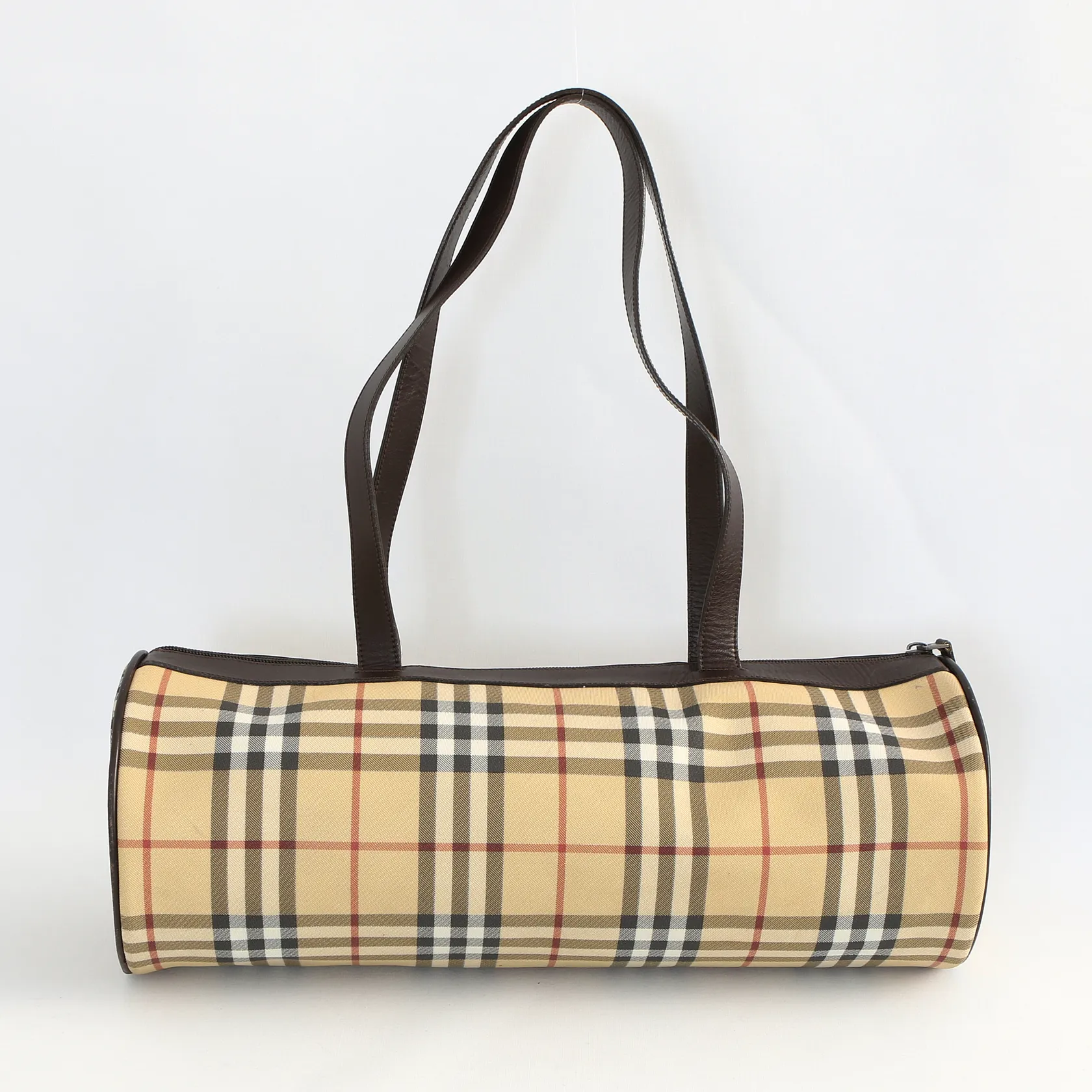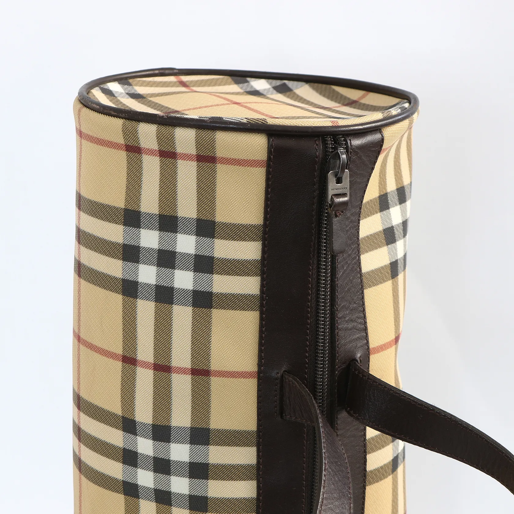 Väska Burberry, Nova check-canvas Ø17 x 44cm, detaljer i oxiderad metall samt bruna skinndetaljer, invändigt en ficka med dragkedja, bruksskick, inga tillbehör. Finns för visning på Pantbanken Skärholmen