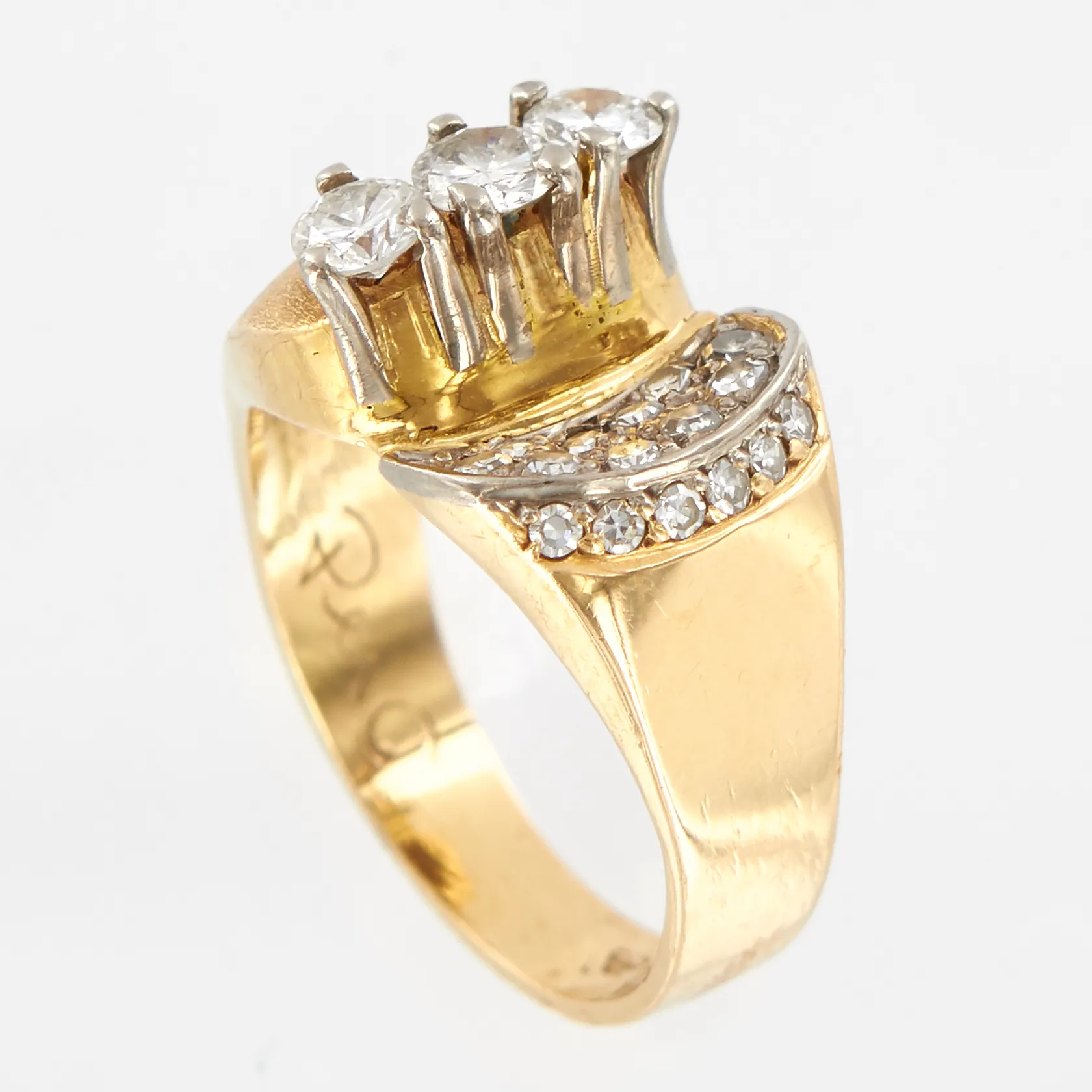 Ring med diamanter 0,72ct, stl 16¾, bredd framtill ca 11mm, 18K. Finns för visning på Pantbanken Skärholmen Vikt: 5,5 g.