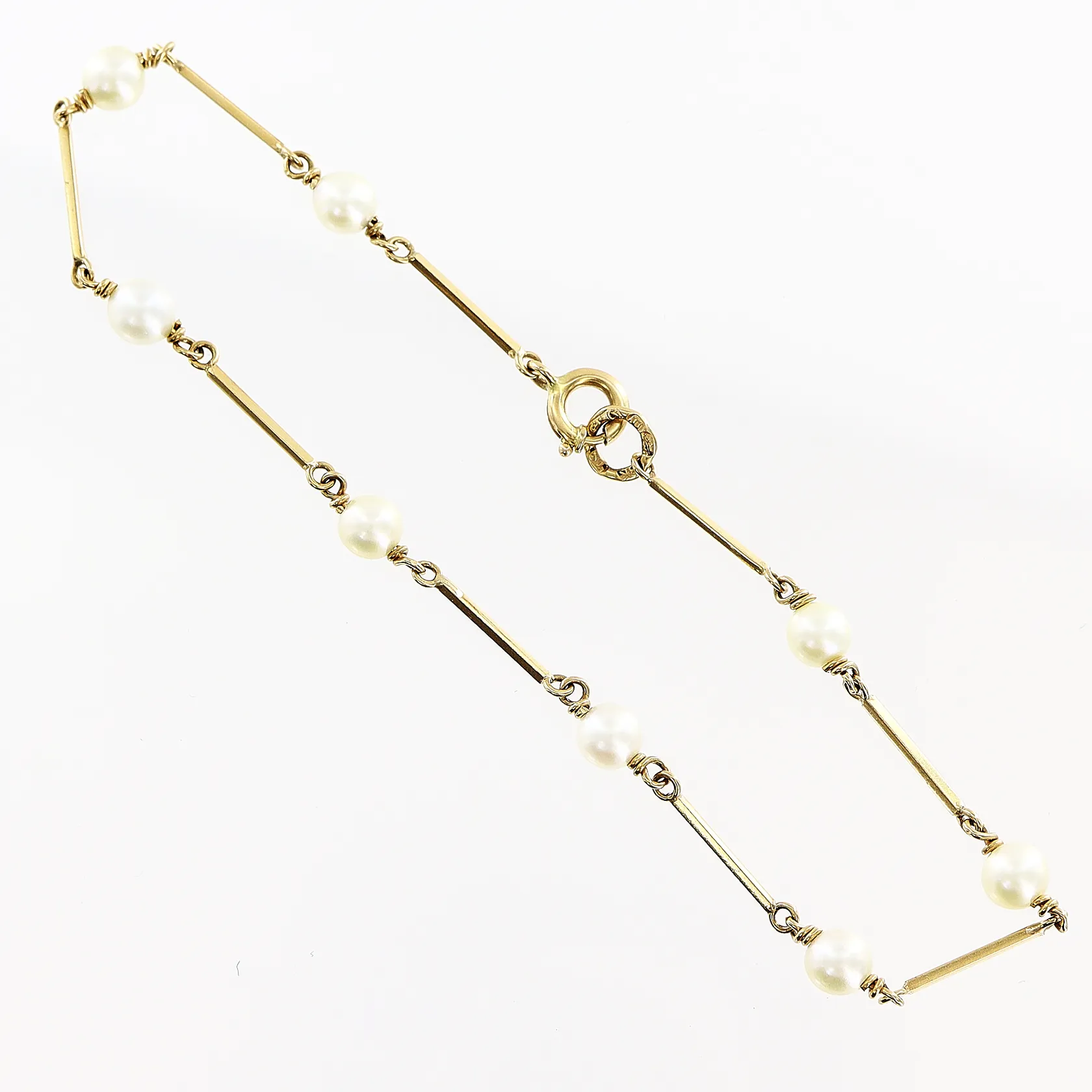 Armband, 19cm, odlade pärlor, bredd 1-5mm, 18K Vikt: 2,5 g.