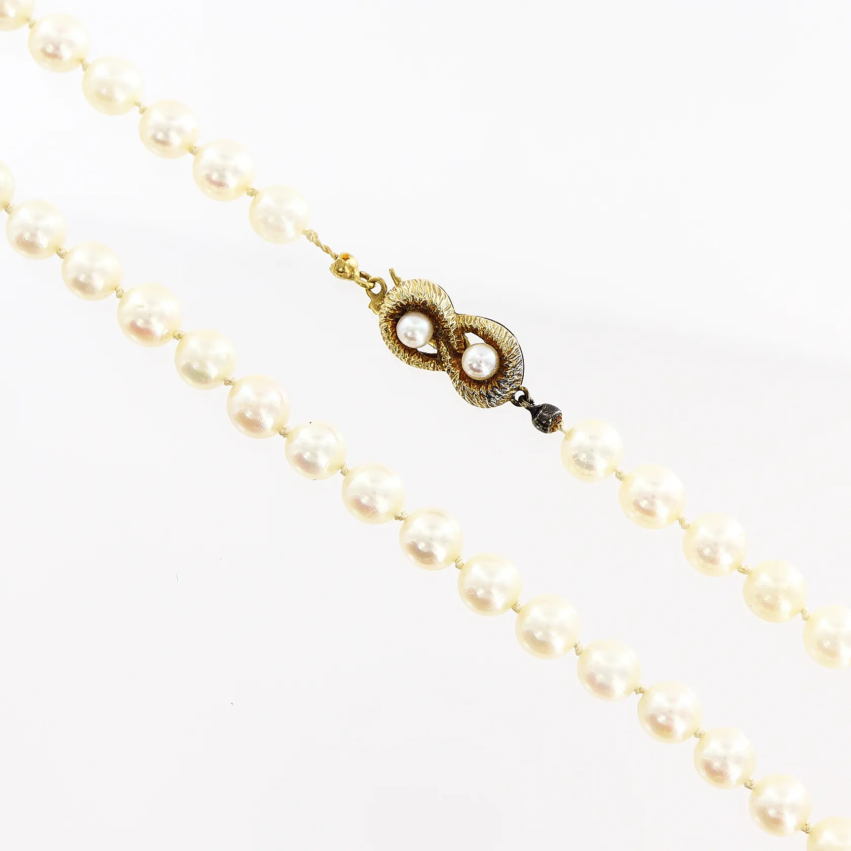 Pärlcollier, 51st odlade saltvattenspärlor, Ø6,5mm, 43cm, lås i 18K med två pärlor, en dobb i metall