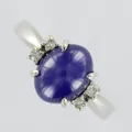 Ring med diamanter totalt ca 4x 0,005ctm samt blå sten, stl 16½, bredd 1-7mm, vitguld, 18K, bruttovikt 3,8g Vikt: 3,8 g.