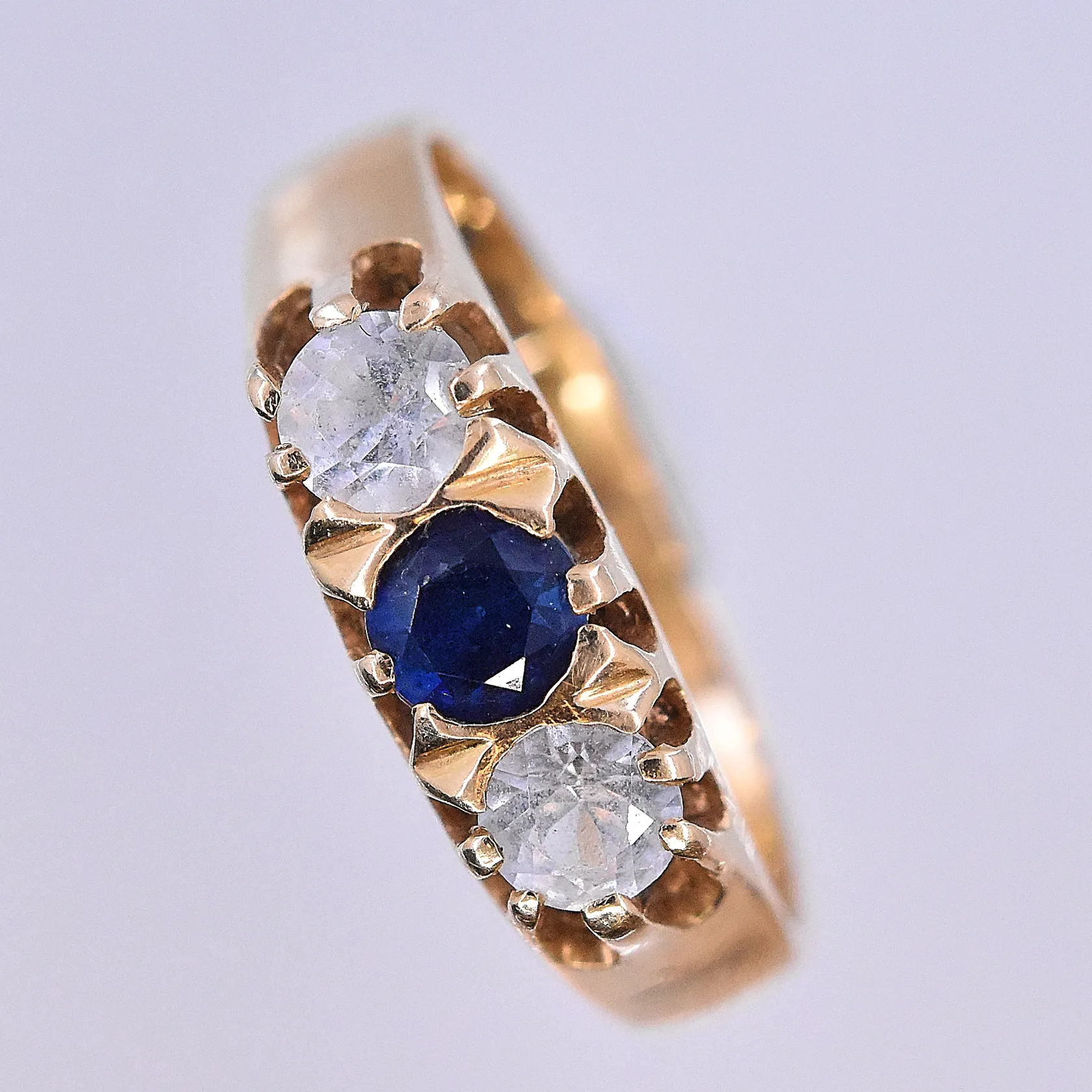 Ring med vita och blå sten, stl 17½, bredd 3-6 mm, 18K. Vikt: 3,5 g.