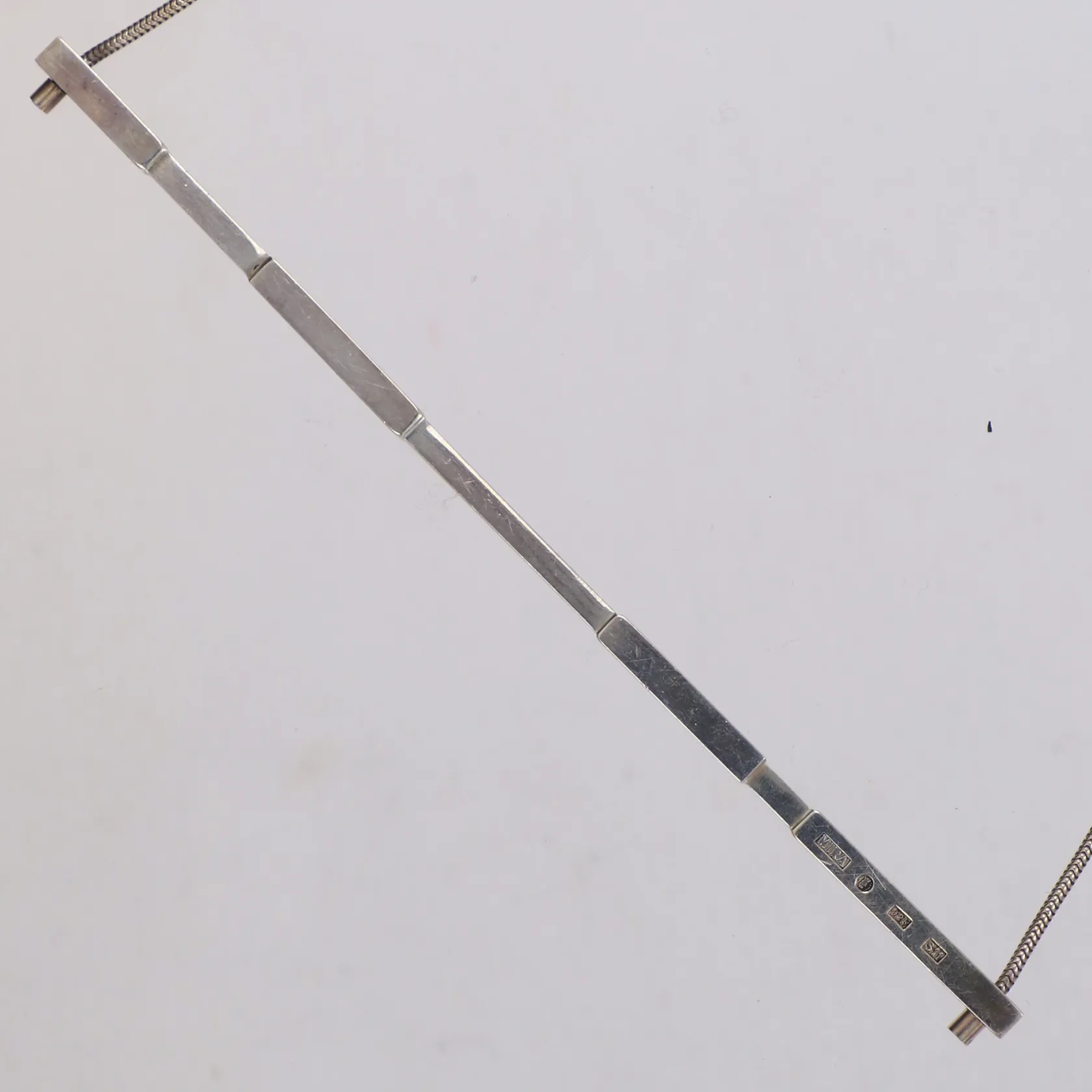 Collier med stav, längd 63cm, bredd 1,2-3mm, Mira Erkens Lindroth, Stockholm, år 2016, silver 925/1000 Vikt: 12,8 g.