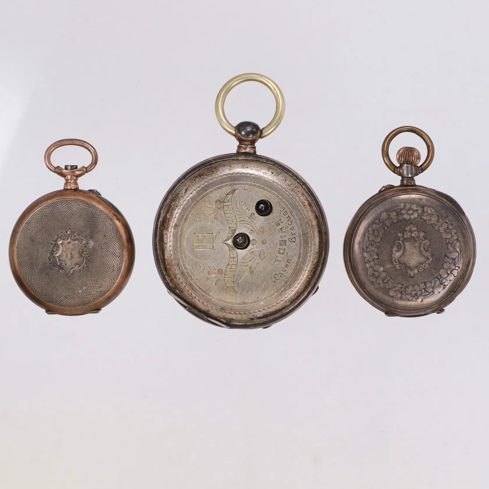 3 fickur, Ø36mm-50mm, saknar glas/bakboett, defekta, 800/1000 silver. Bruttovikt 137,0g