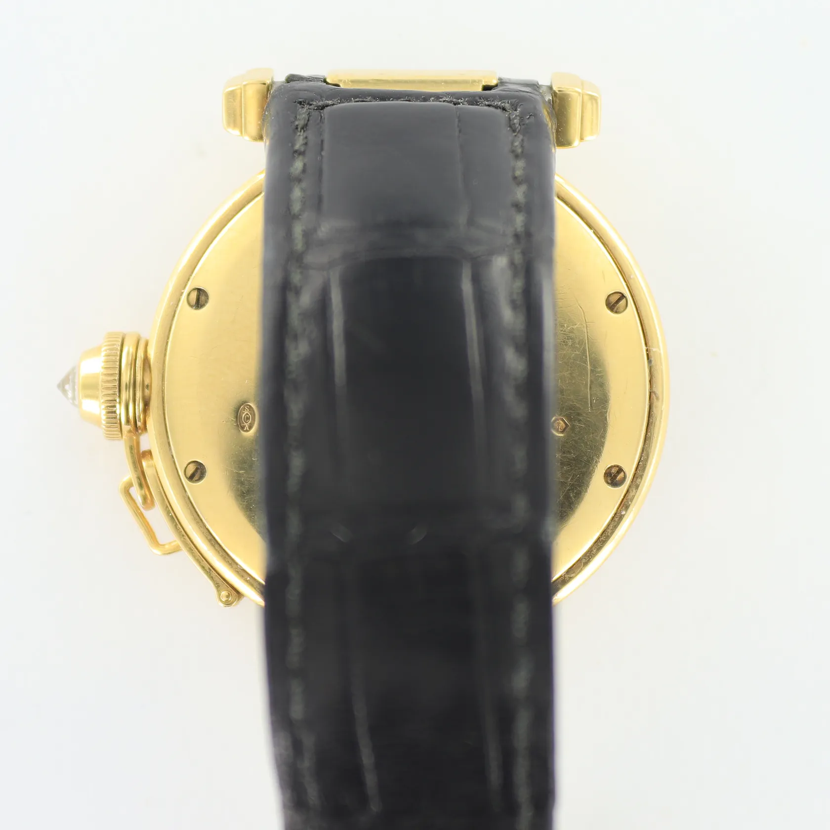Finns i Mölndal! Armbandsur, Pasha de Cartier, Ø32mm, #339762CE, 18K i boett, boett nr. 2811, med diamanter på krans, samt på hornen, 54st ca 0,04ct/st, armband trasigt, sitter löst samt åt fel håll, viklås i 18K, repor på boett, med box, certifikat och butikskvitto Skickas med postpaket.