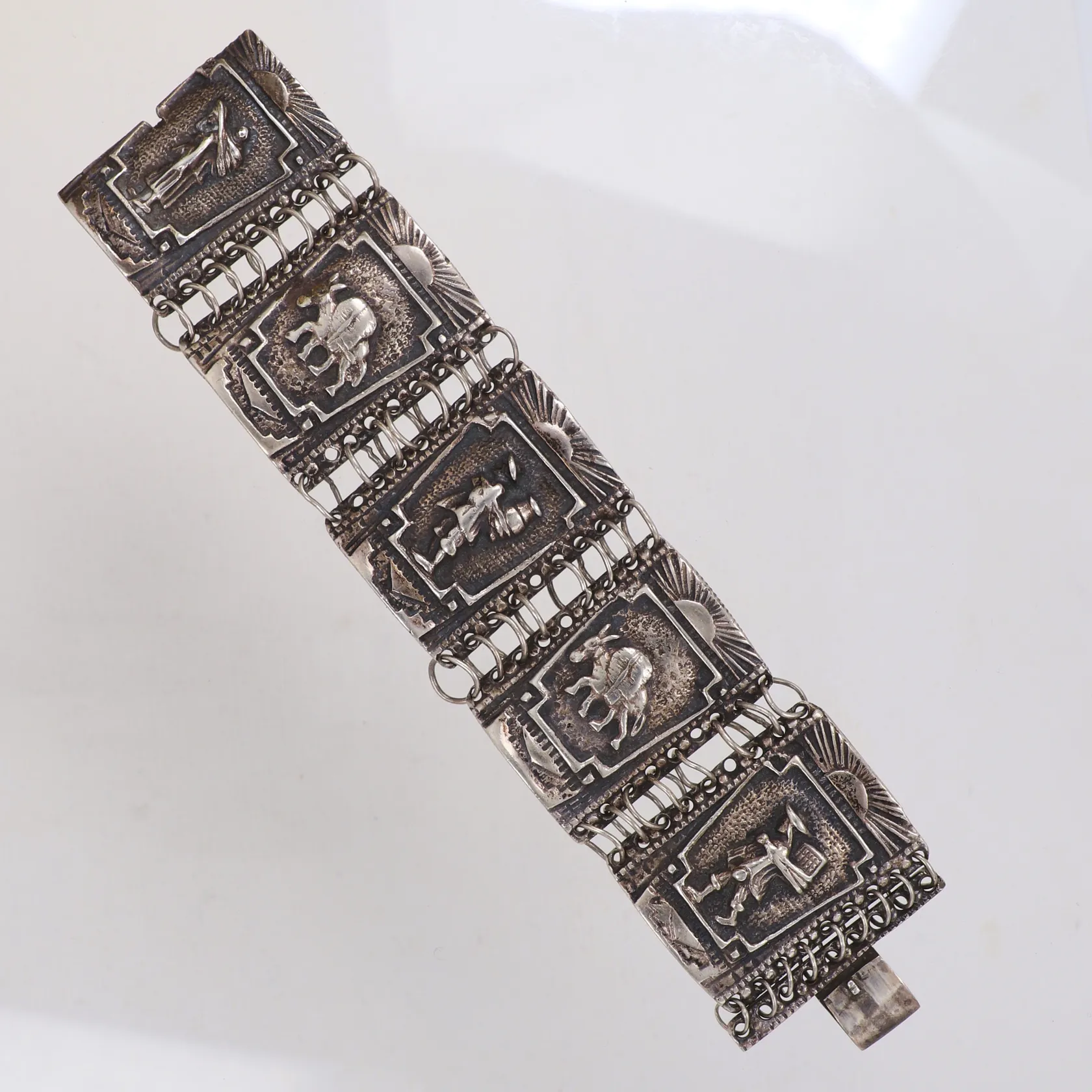 Armband, ledat, längd 17,5cm, bredd 42mm, silver 900/1000 Vikt: 99,6 g.