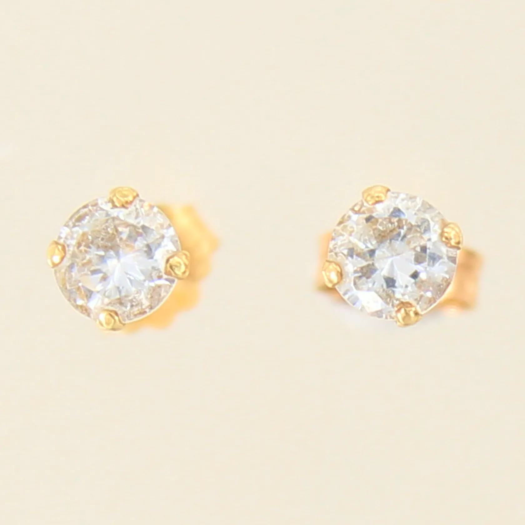 Ett par örhängen med vita stenar, Ø4mm, omaka snurrebussar, 18K Vikt: 0,6 g.