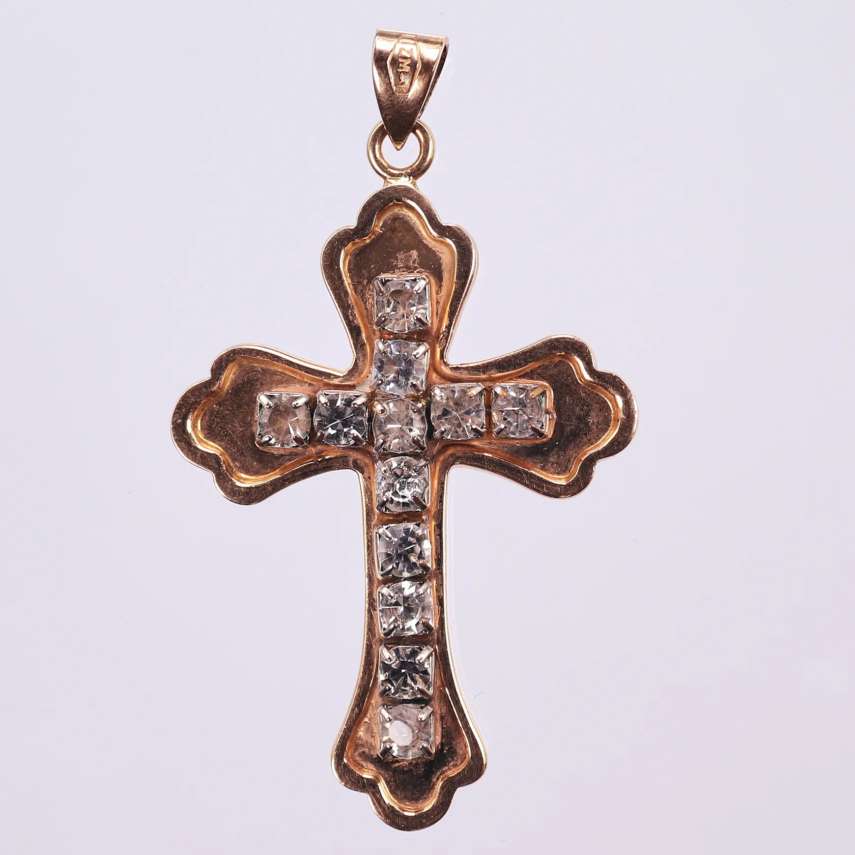 Hänge kors med vita stenar, 65x40mm, 18K, bruttovikt 15,1g Vikt: 15,1 g.