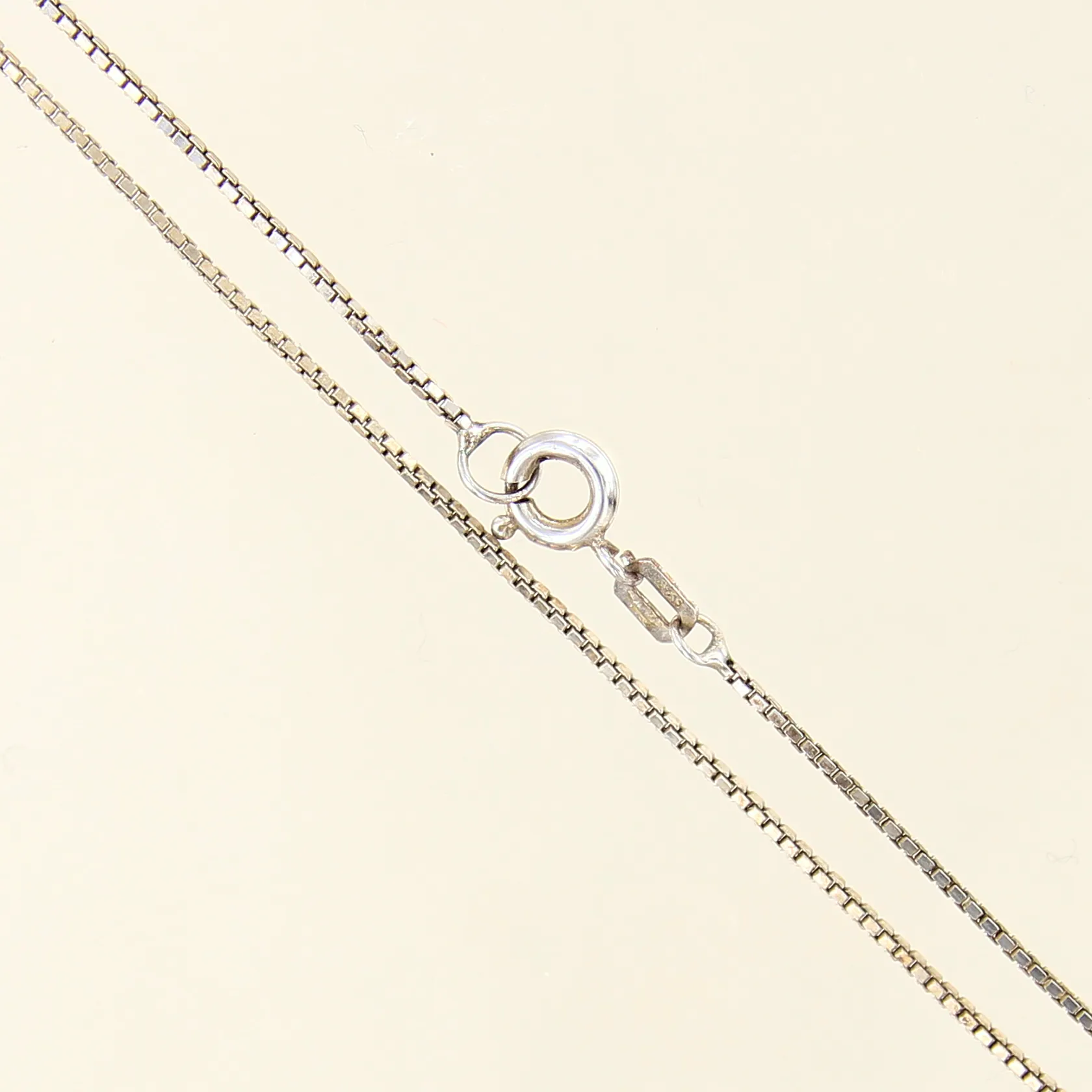 Kedja Venezia, längd 42cm, bredd 1mm, ojämnheter, bucklig ögla, ögla med öppen lödning, silver 925/1000 Vikt: 2,5 g.