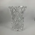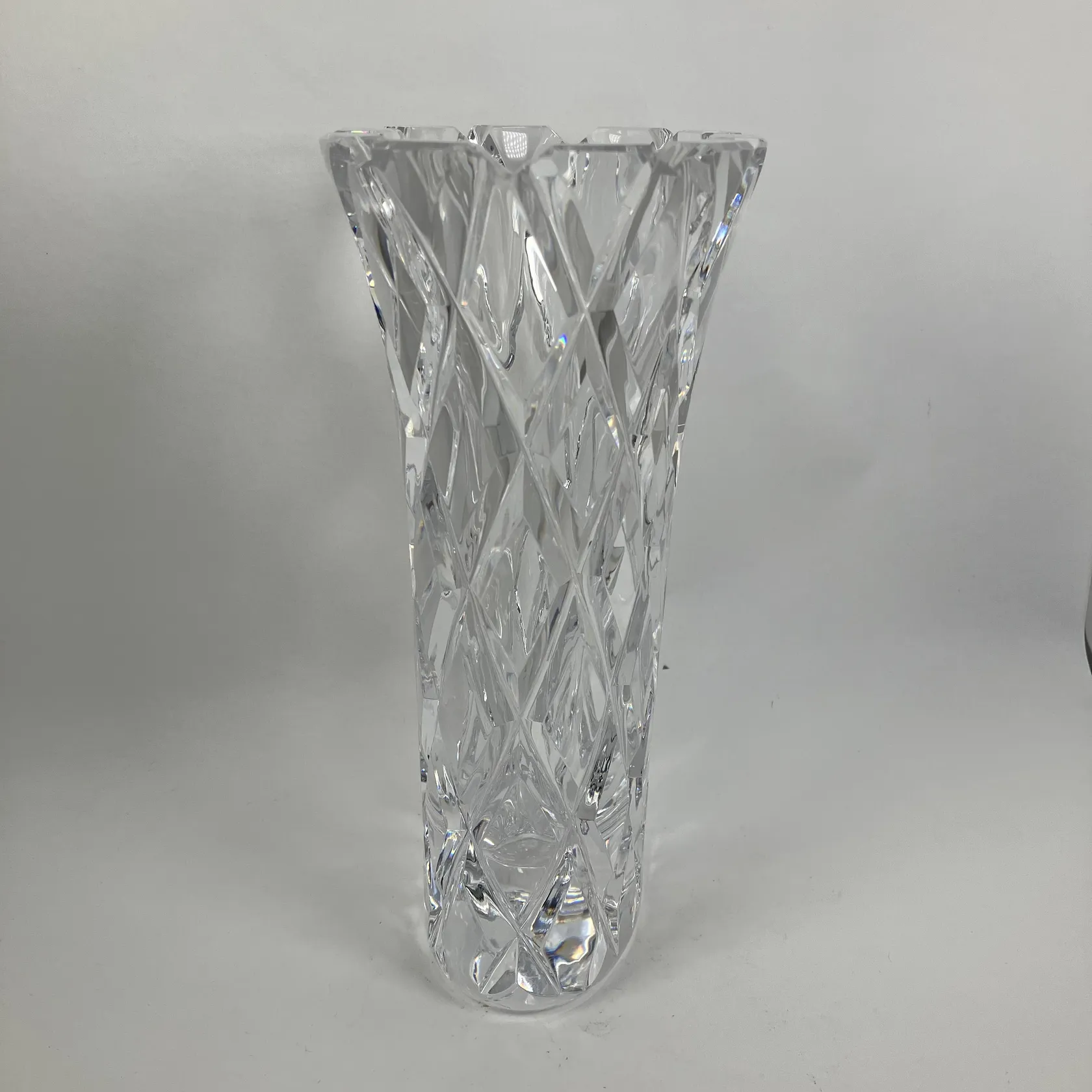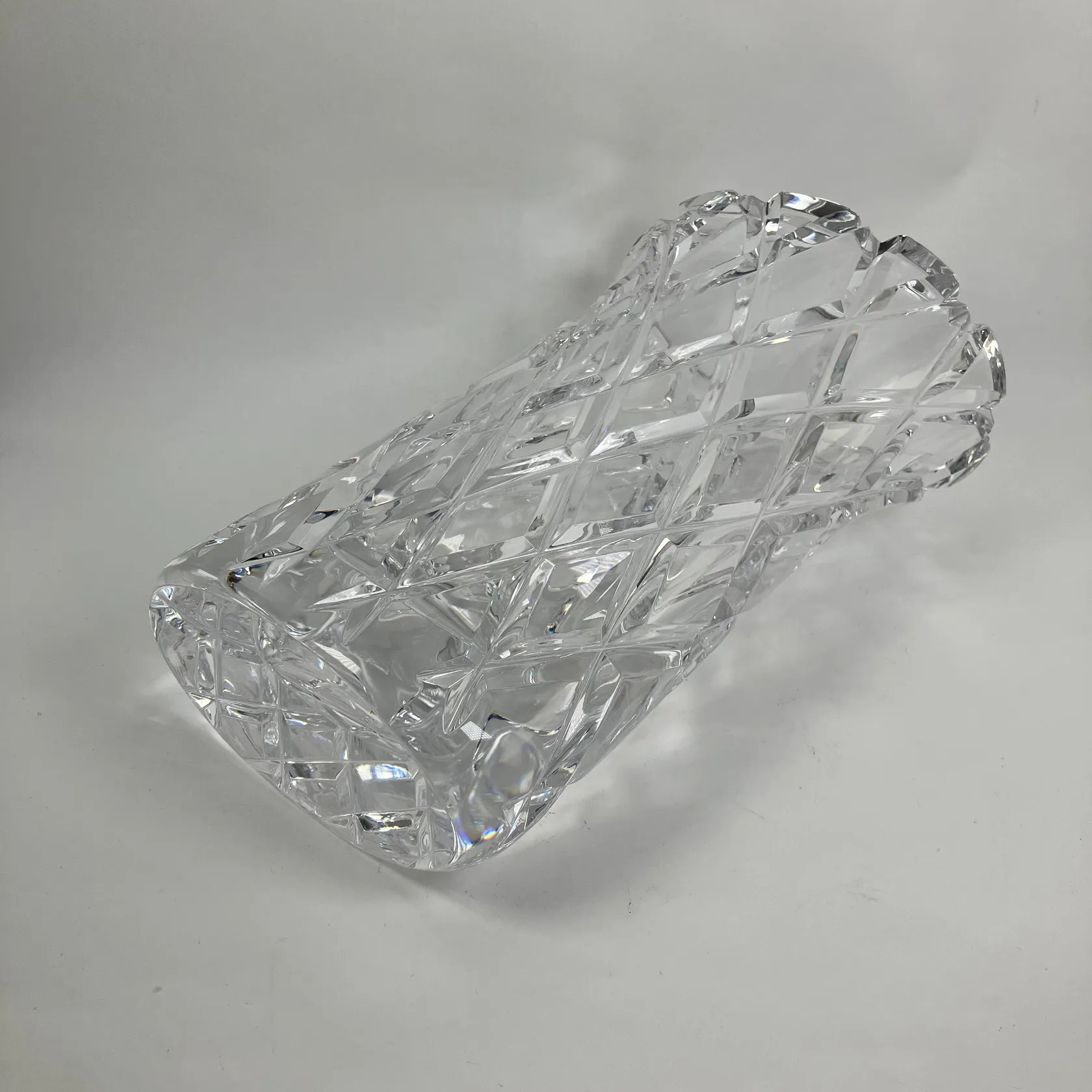 Vas, höjd 25cm, bredd 15,5cm, Sofiero, design Gunnar Cyrén, signerad Orrefors, rutslipad kristall, etikettmärkt, flera små nagg, Skickas med postpaket.