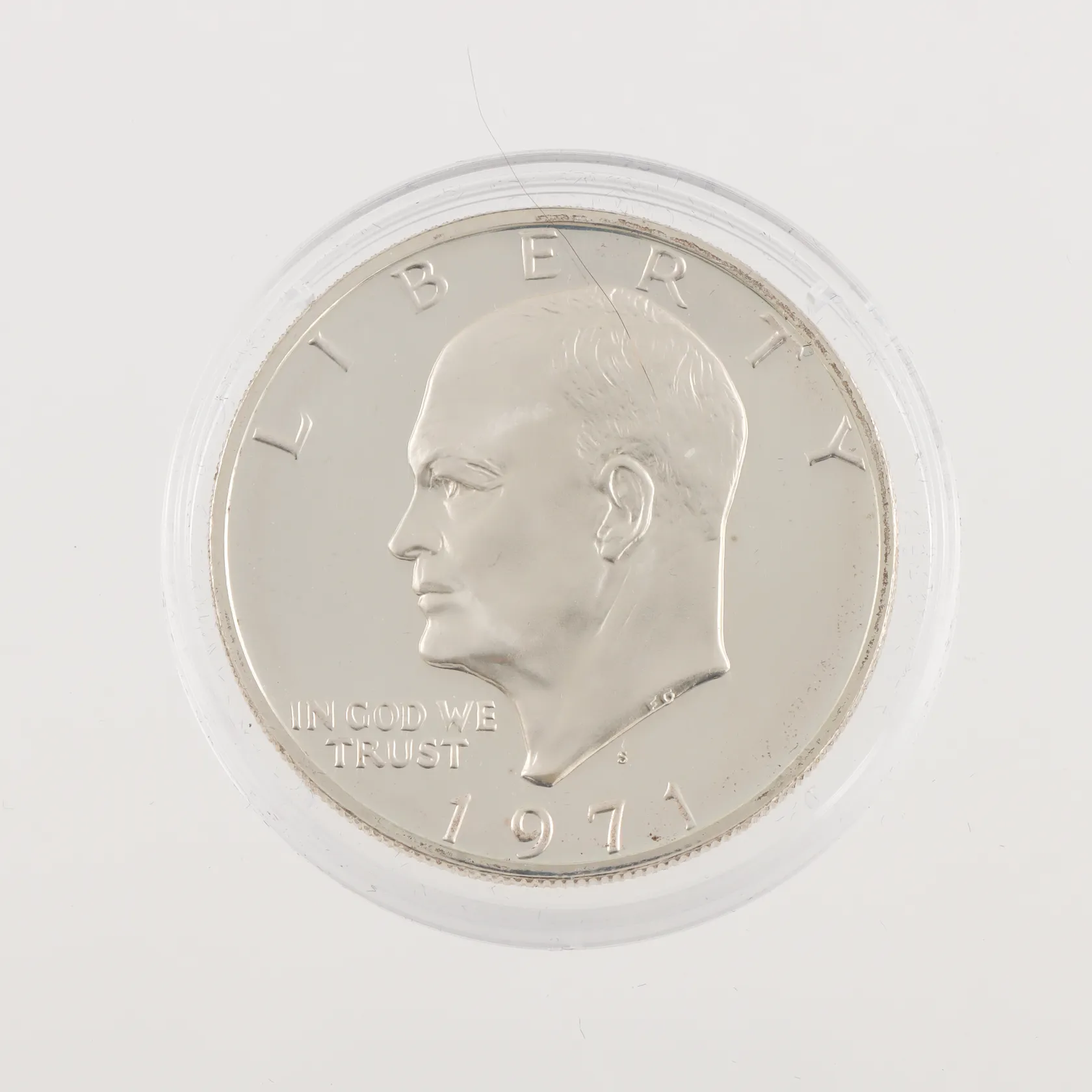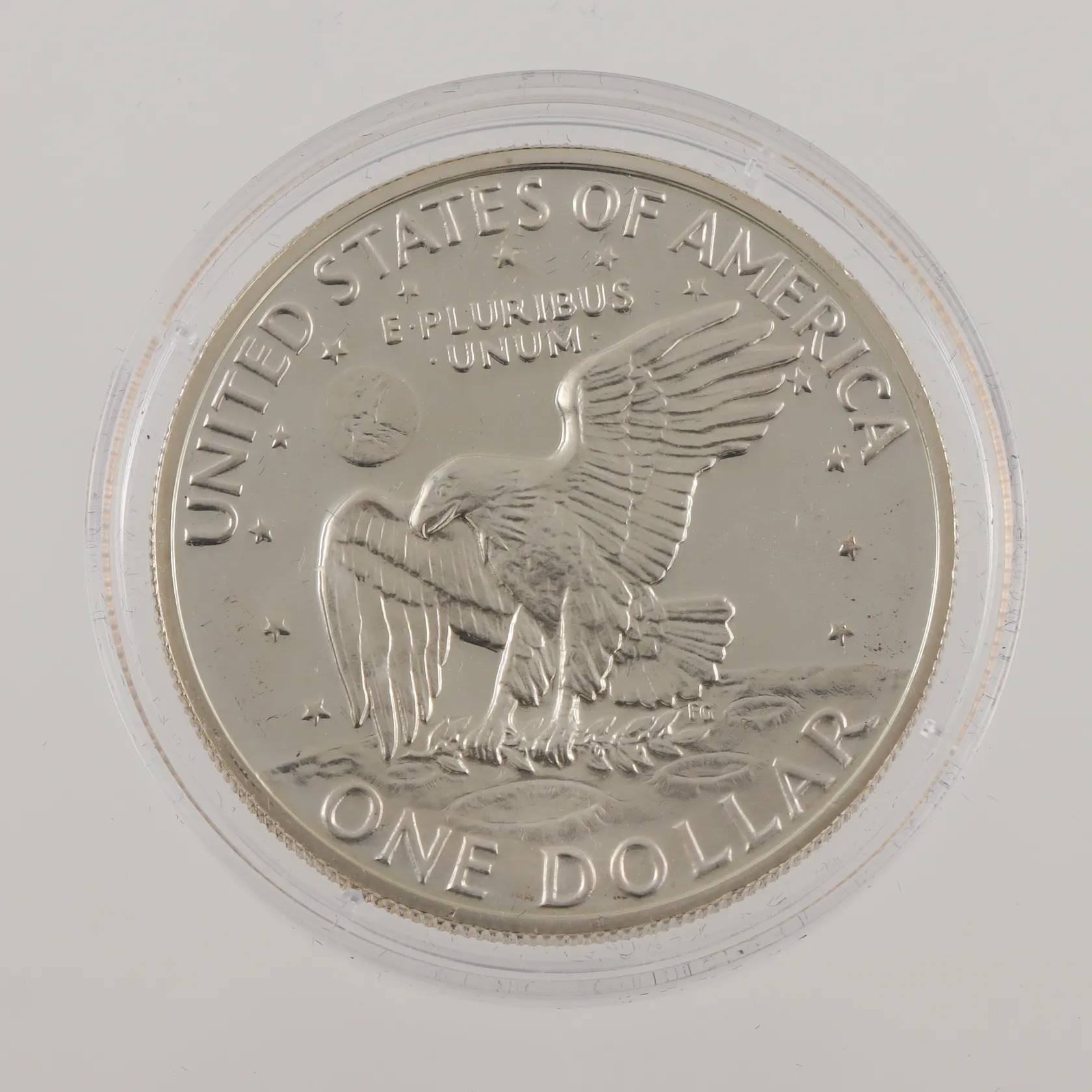 Mynt, Amerikansk silverdollar, 1 Dollar, Dwight D. Eisenhower, Ø38,1mm, 400/1000 silver, plastetui, certifikat från Mynthuset Sverige. Vikt: 24,6 g.