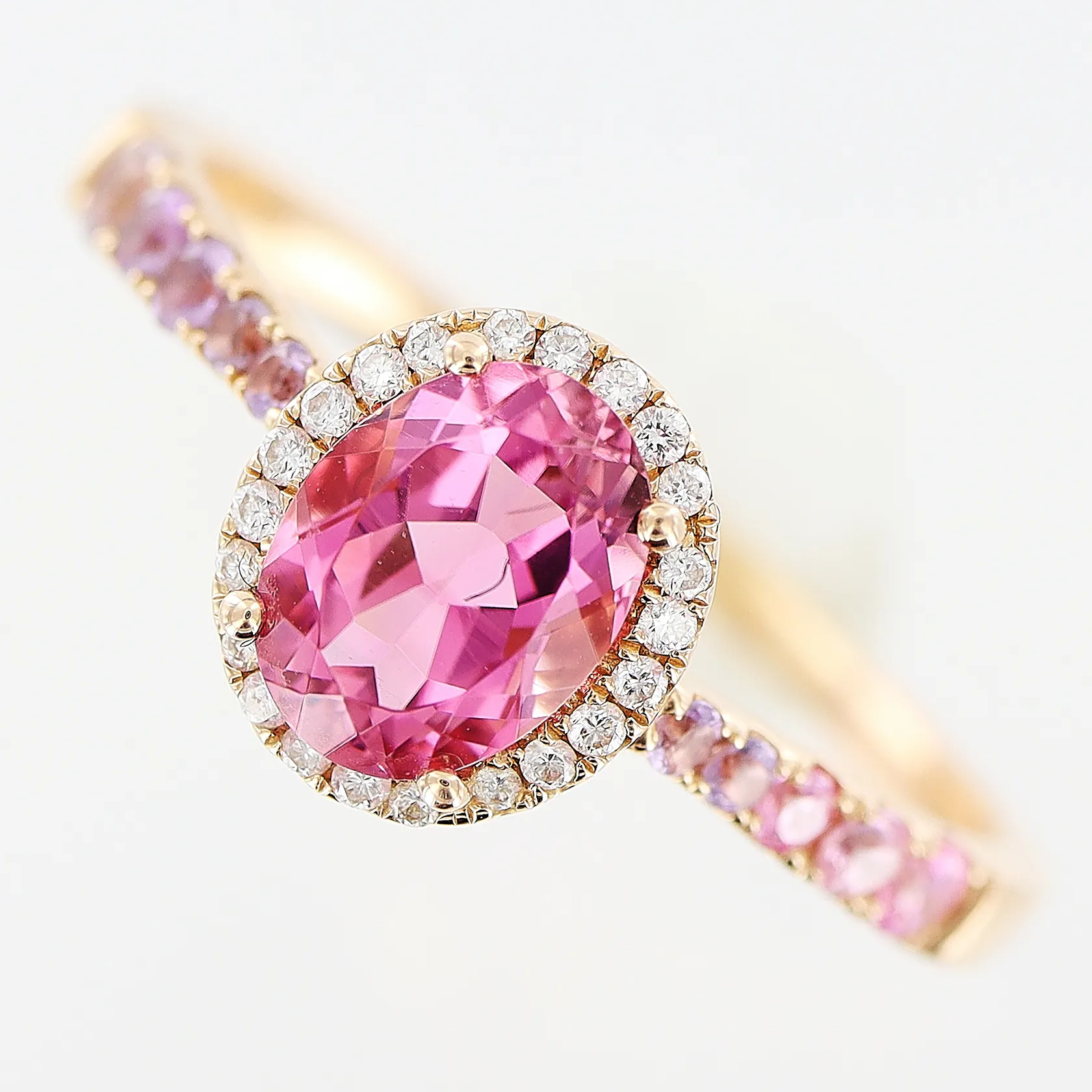 Ring rosa stenar och diamanter 22 x ca 0,005ct, stl 20, roséguld, Kaplans Safir AB,18K Vikt: 3,7 g.