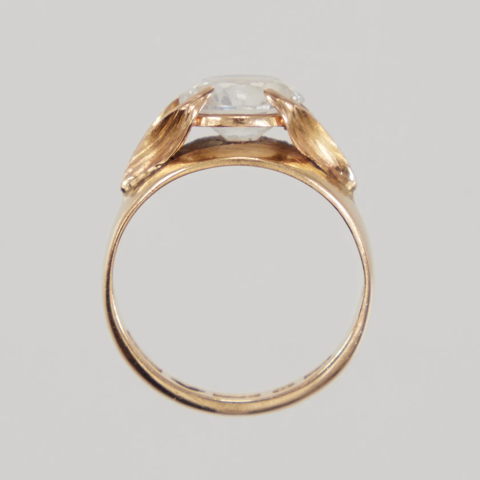 Ring med vit sten stl 17½, bredd 2,8-9mm, sten lös i fattning, 18K, Vikt: 4,6 g.