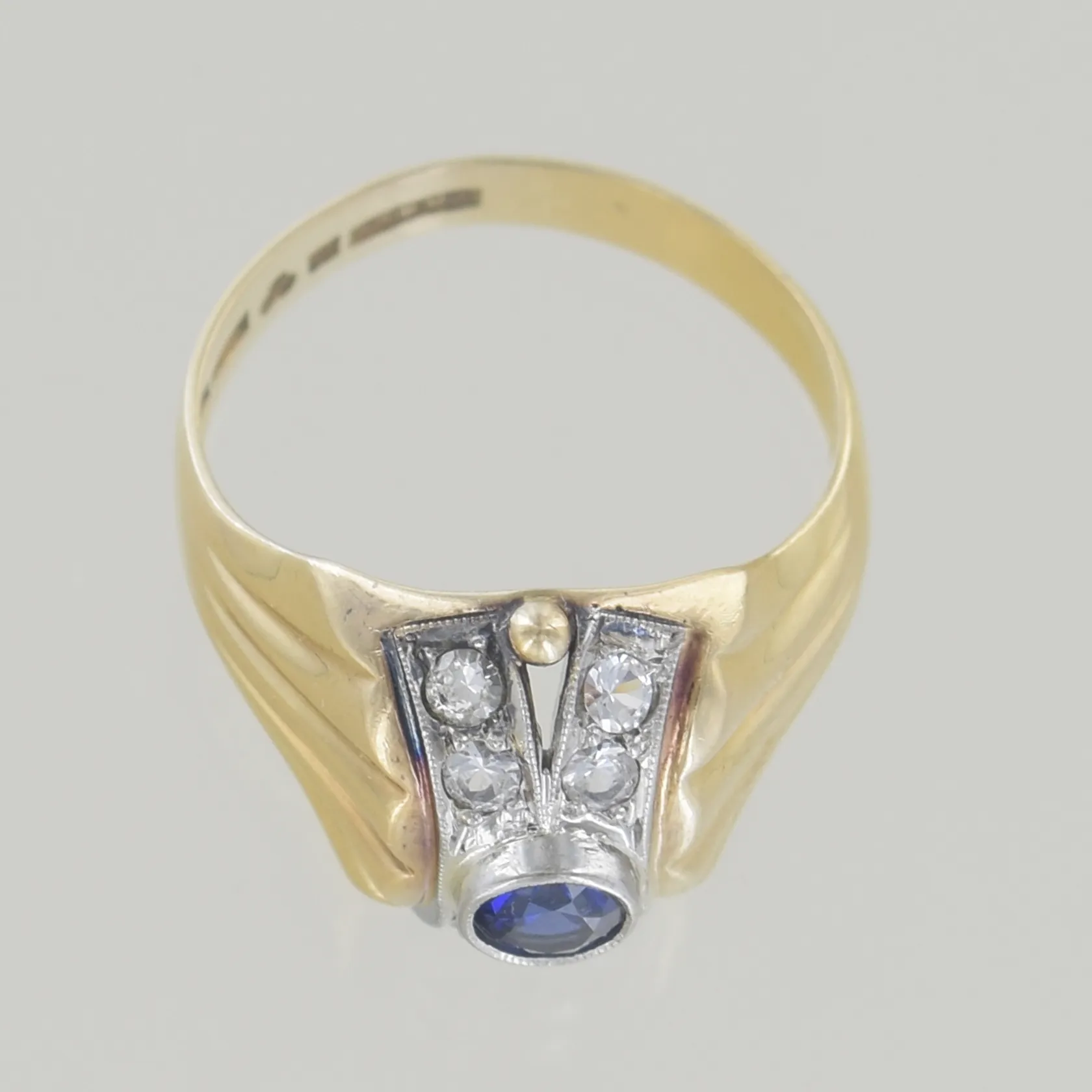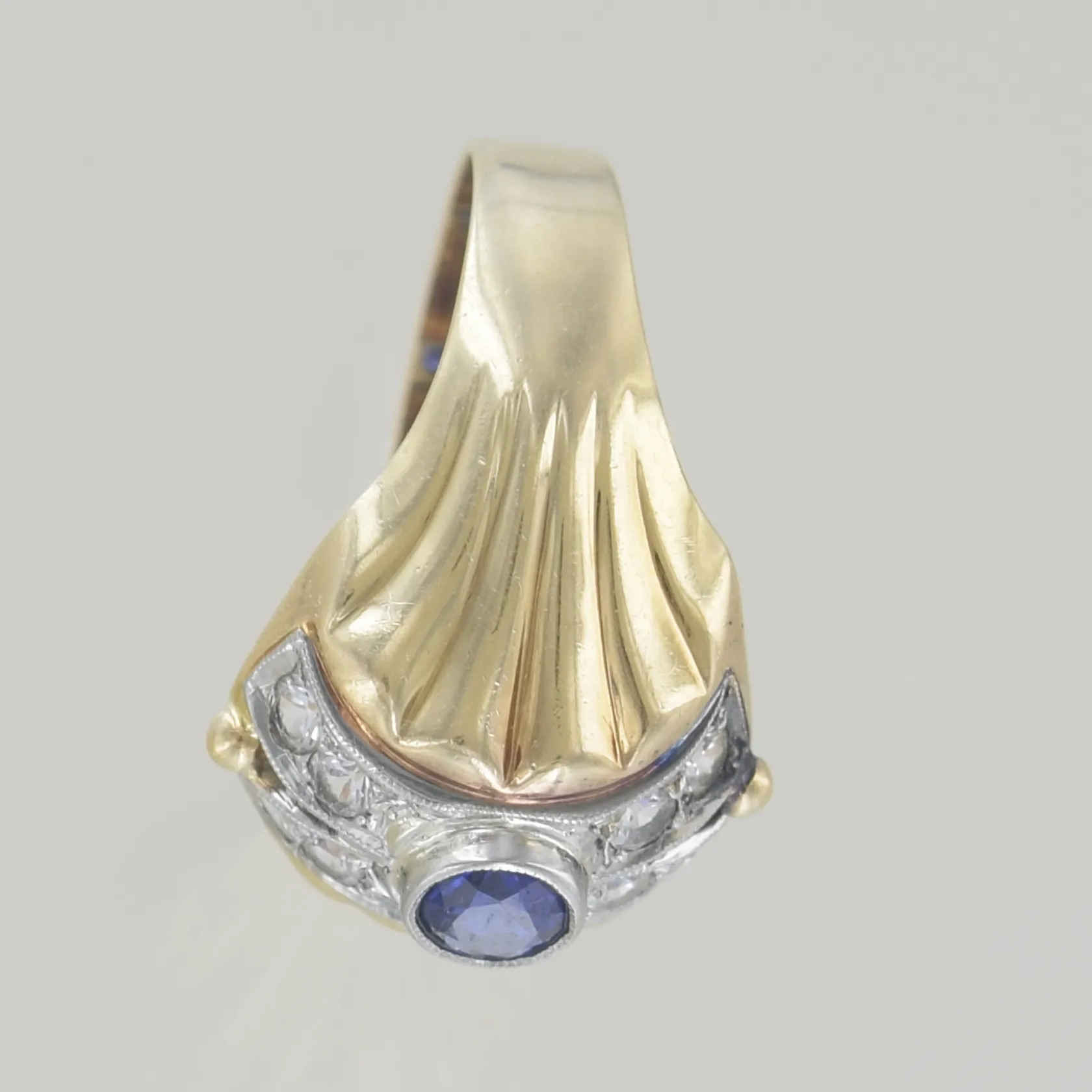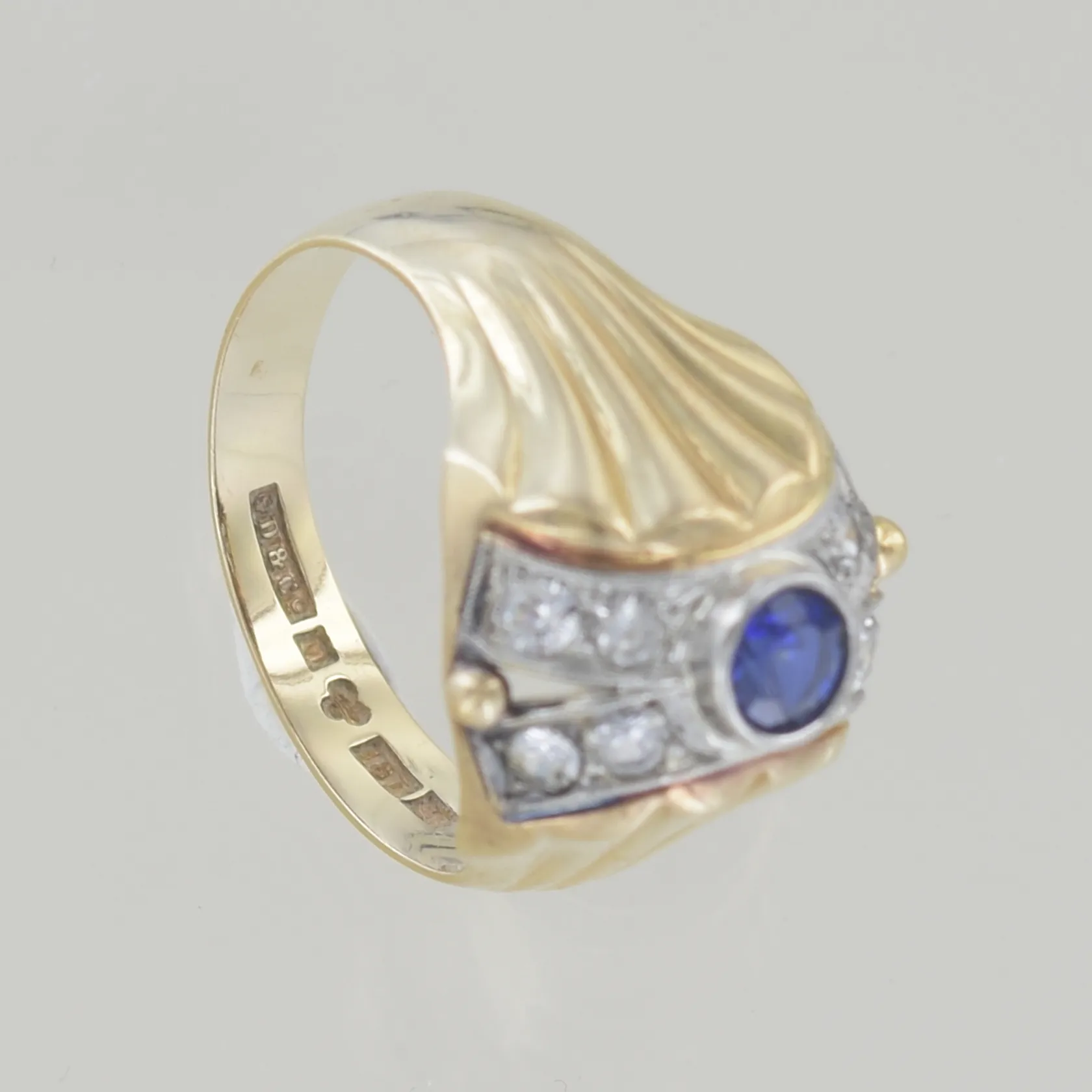 Ring med en blå sten samt vita stenar, Ø 18 mm B 3,4 - 16 mm 18k Vikt: 4,8 g.