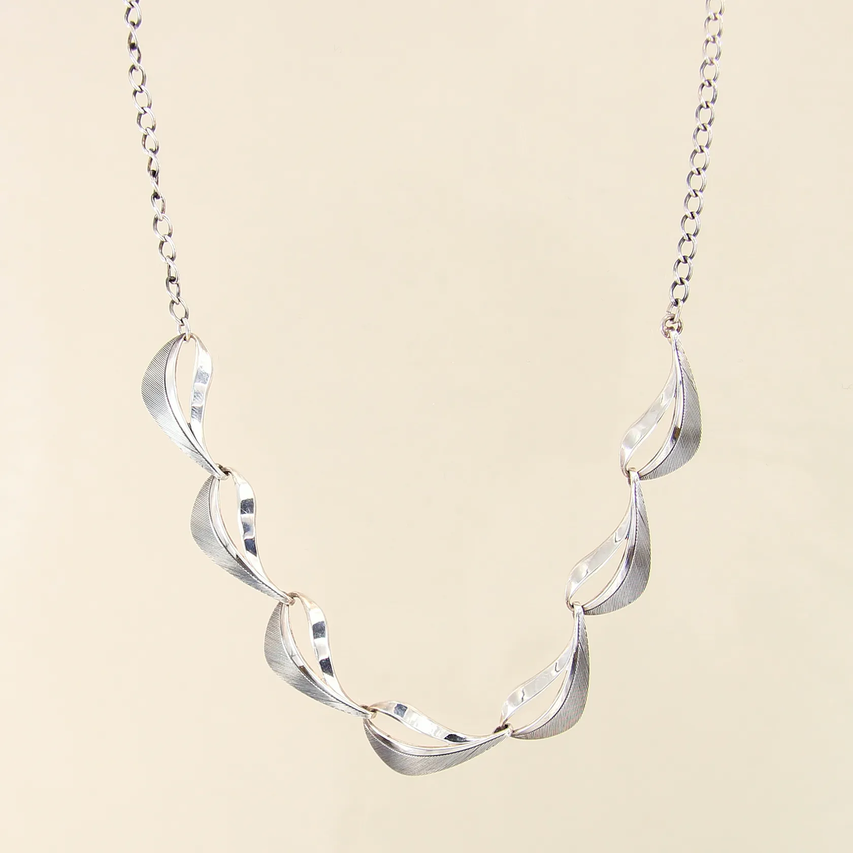 Collier med sju integrerade berlocker, längd ca 48,5cm, bredd 3-12mm, silver 830/1000 Vikt: 11,4 g.