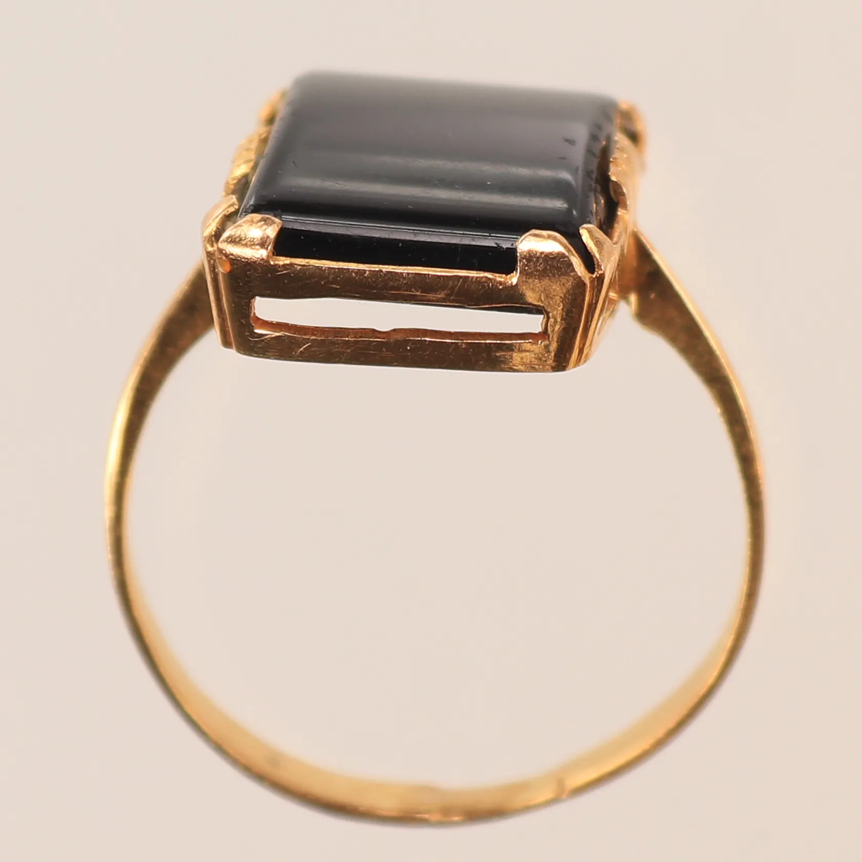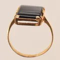 Ring med svart sten, stl 20¾, bredd 2-20mm, 21K, bruttovikt 5,2g Vikt: 5,2 g.