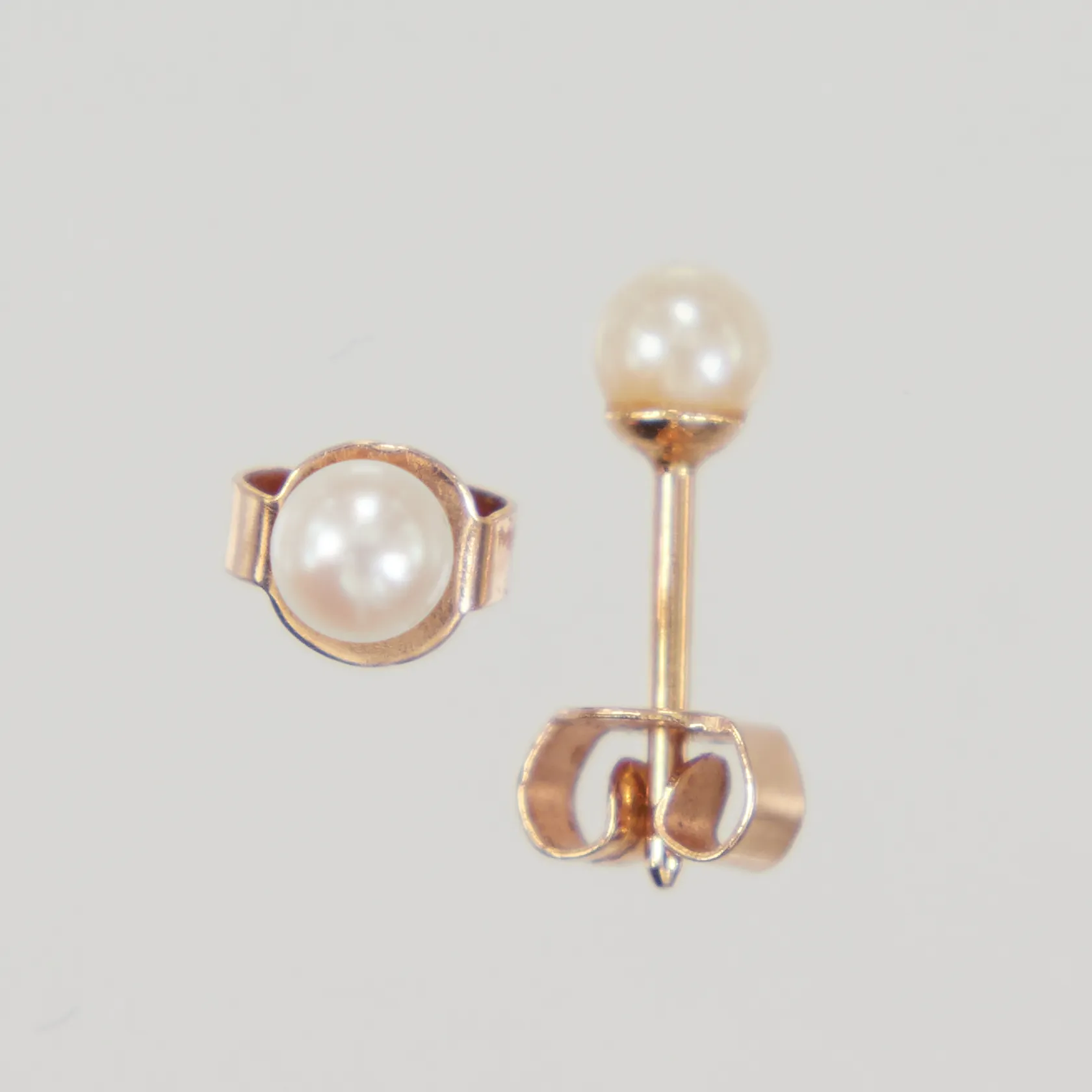 Ett par örhängen med odlade pärlor, Ø3,8mm, stift, 18K, Vikt: 0,7 g.