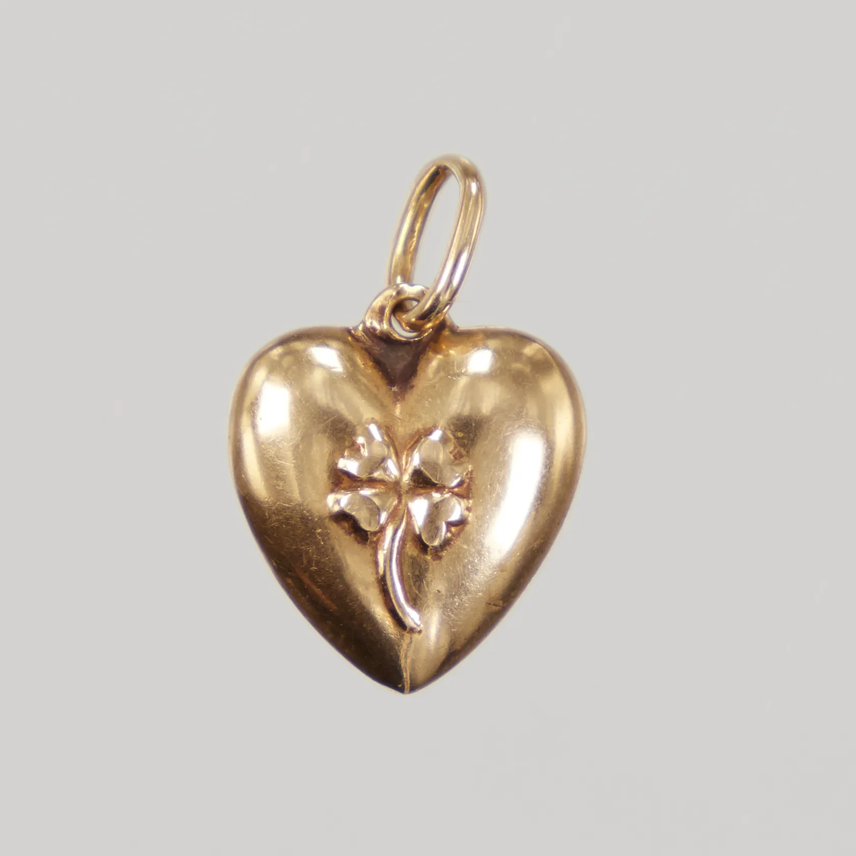 Berlock hjärta med fyrklöver längd inklusive ögla 17mm, bredd 10,5mm, ytslitage, ostämplad, 18K, Vikt: 0,5 g.