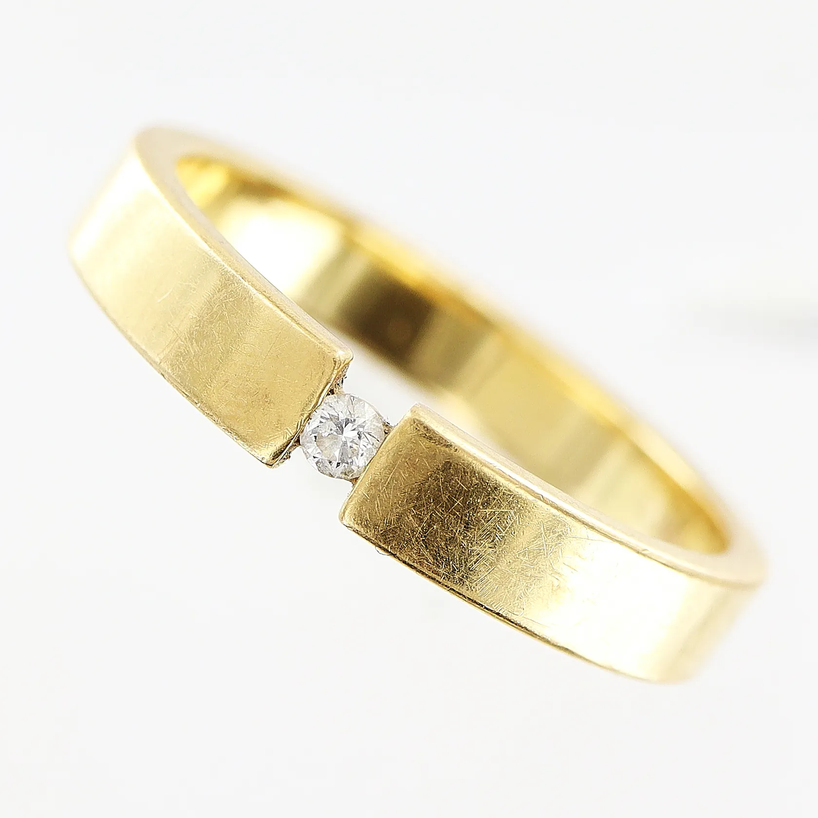 Ring diamant 0,05ct Schalins, stl 20, bredd 3,5mm, 18K. Vikt: 6,3 g.