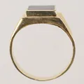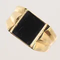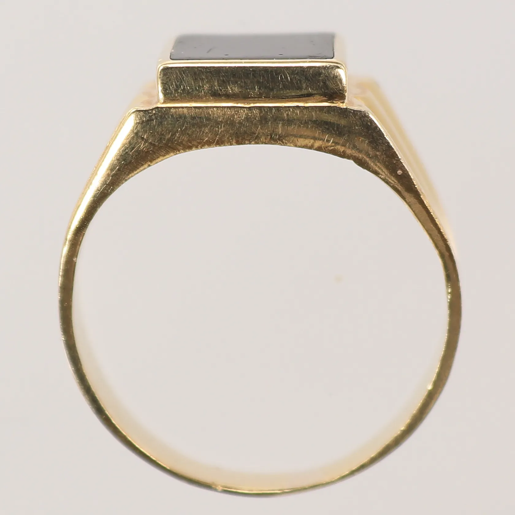 Klackring med svart sten, stl 18¾, bredd 3-8mm, repig sten, 14K Vikt: 6,3 g.