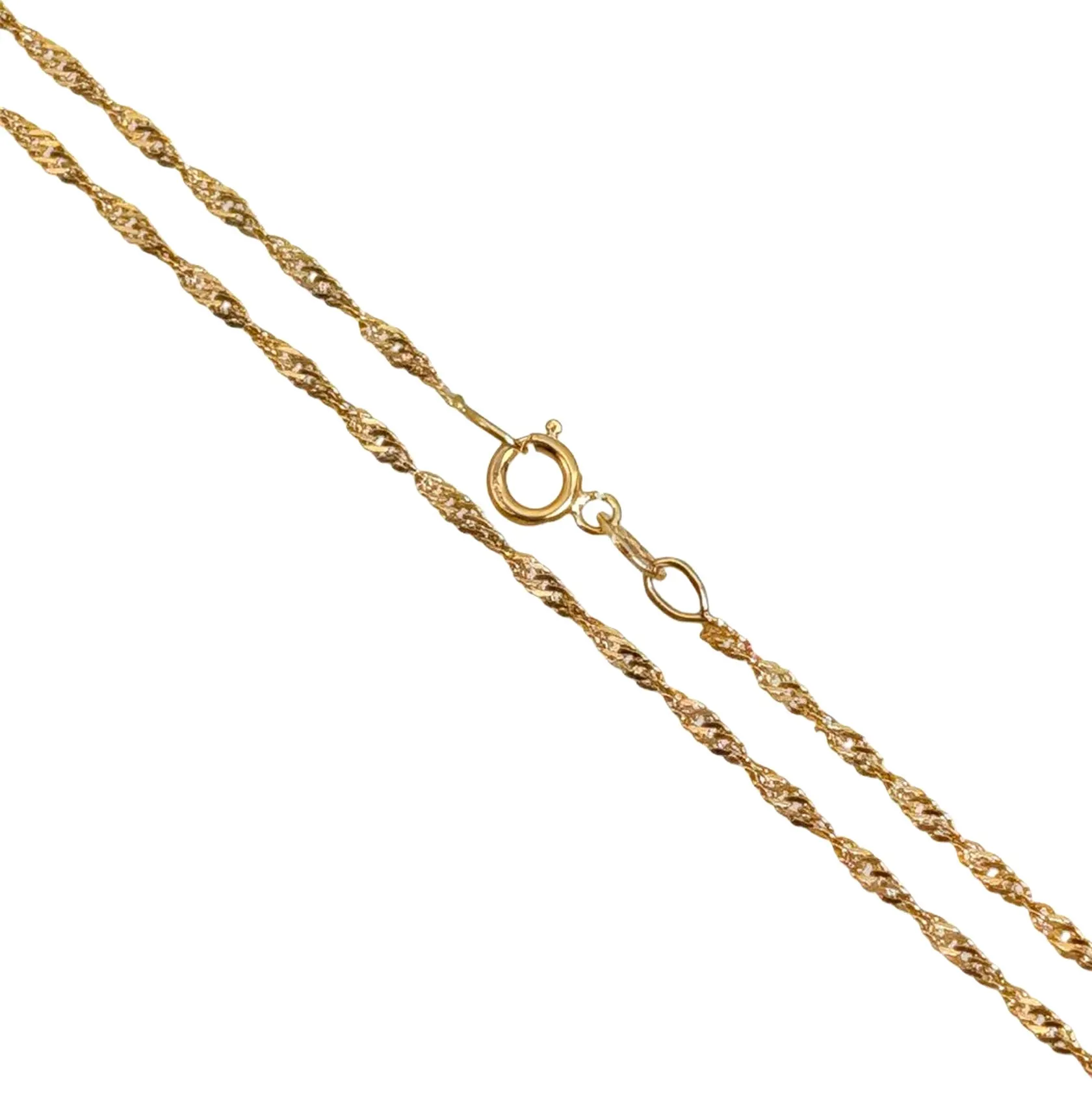 Halskedja Singapore 18K guld längd 50,5 cm, bredd 1,4 mm, fint skick Vikt: 2,2 g.
