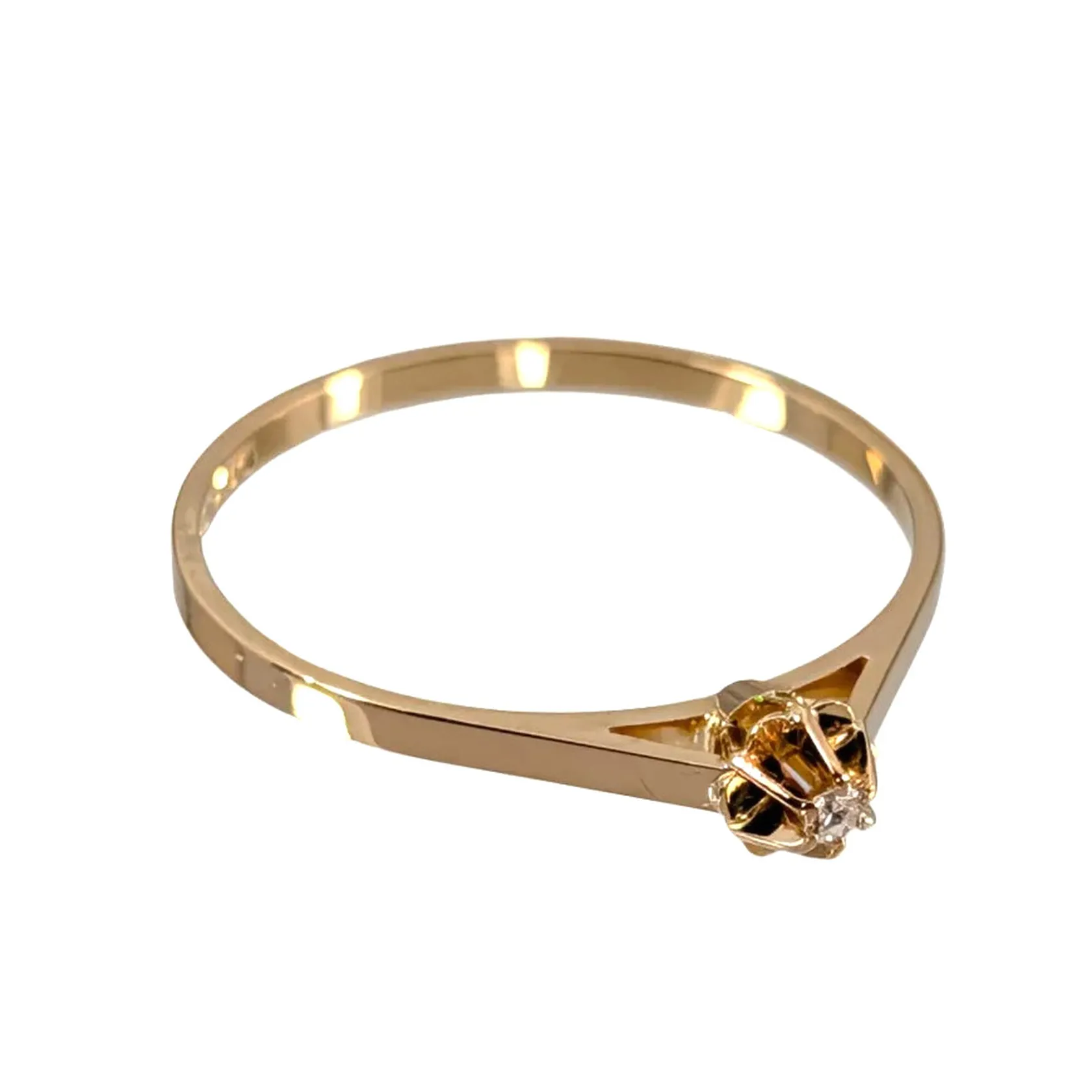 Diamantring 18K guld Guldfynd Diamant 0,01ct, Guldfynd (GFAB), svensk kontrollstämpel, Ø19,0 mm, bredd 1,3 - 4,3 mm, fint skick Vikt: 1,5 g.