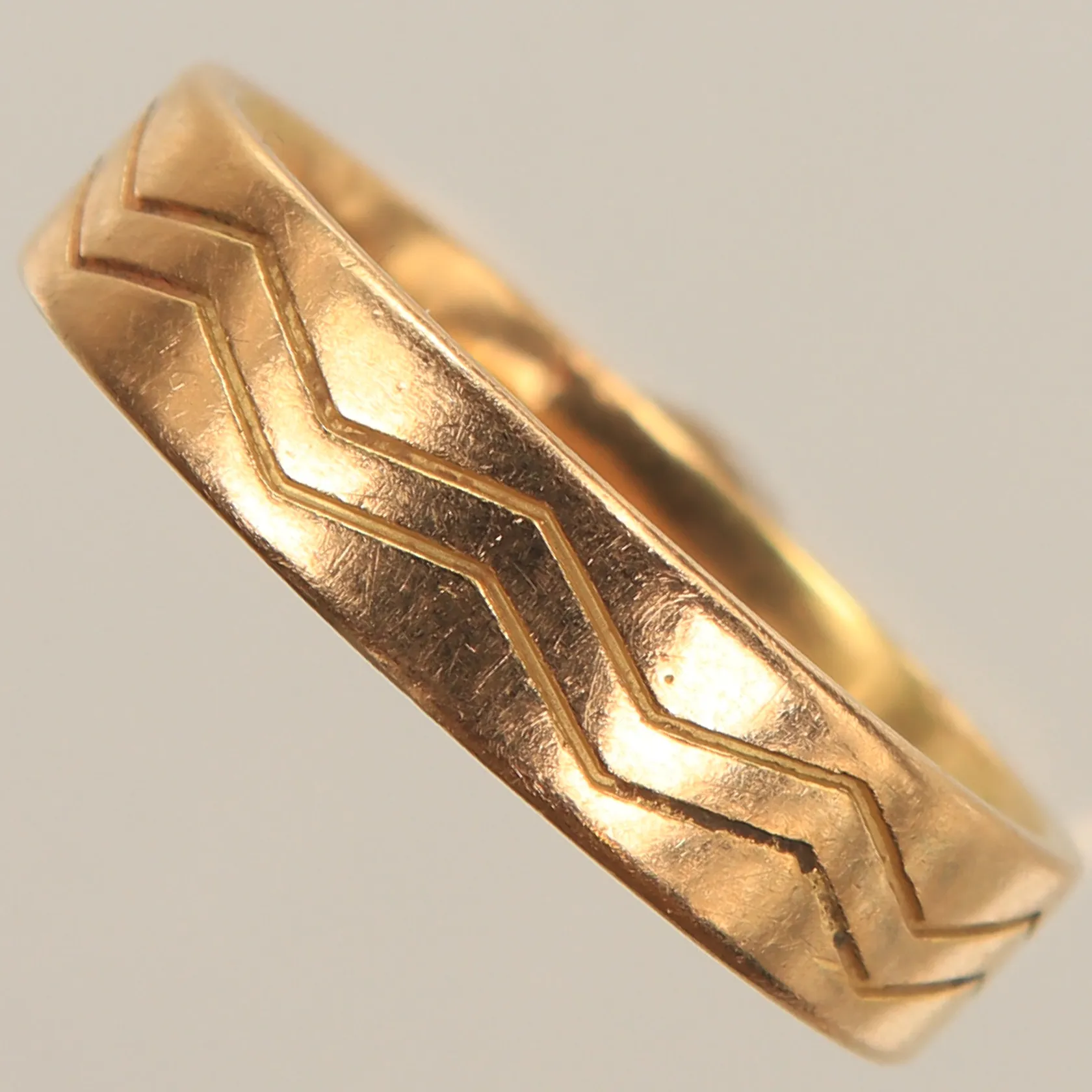 Ring mönstrad, stl 19¼, bredd 5mm, 18K 6,4g Vikt: 6,4 g.