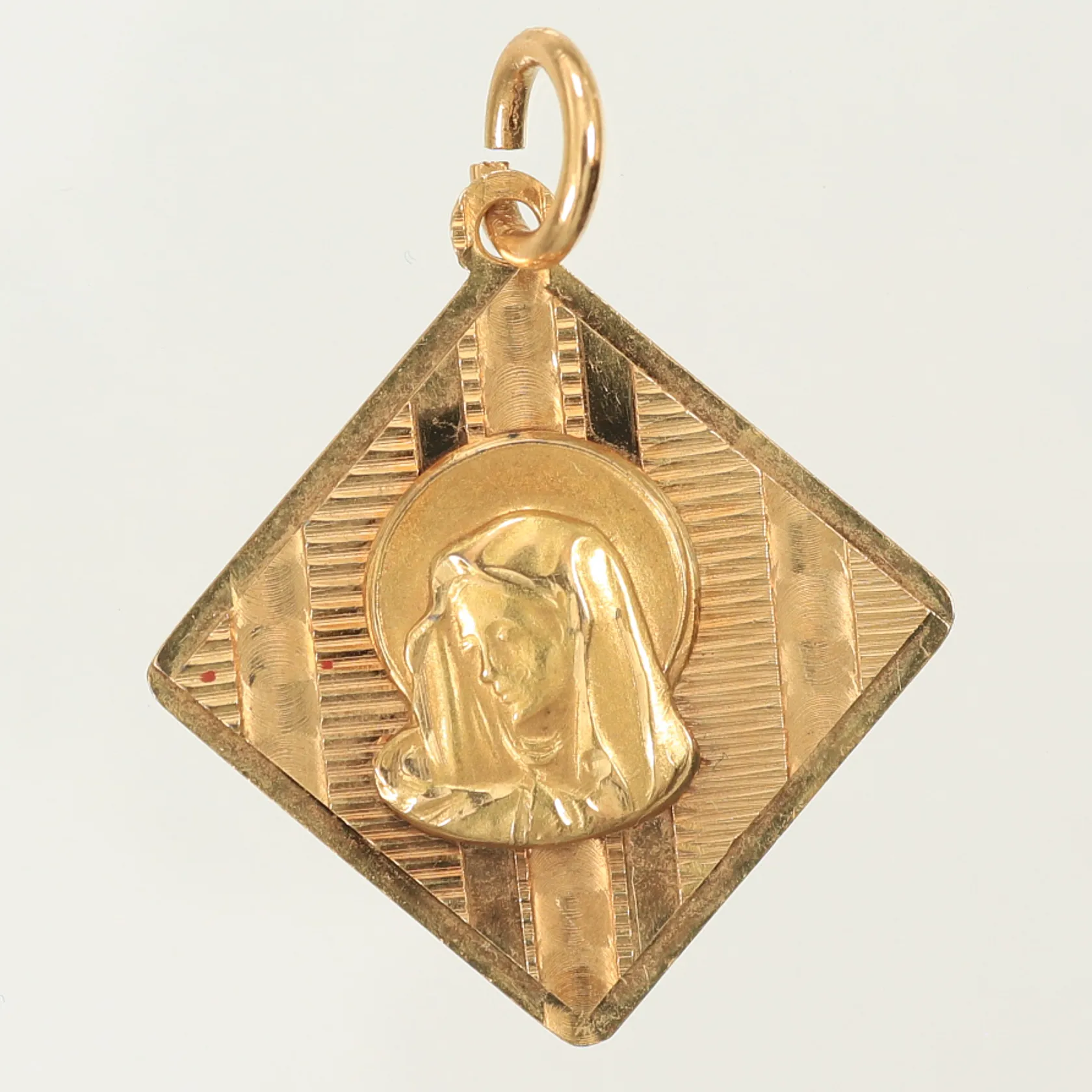 Hänge Maria, längd 32mm inkl ögla, bredd 27mm, 18K, 4,8g Vikt: 4,8 g.