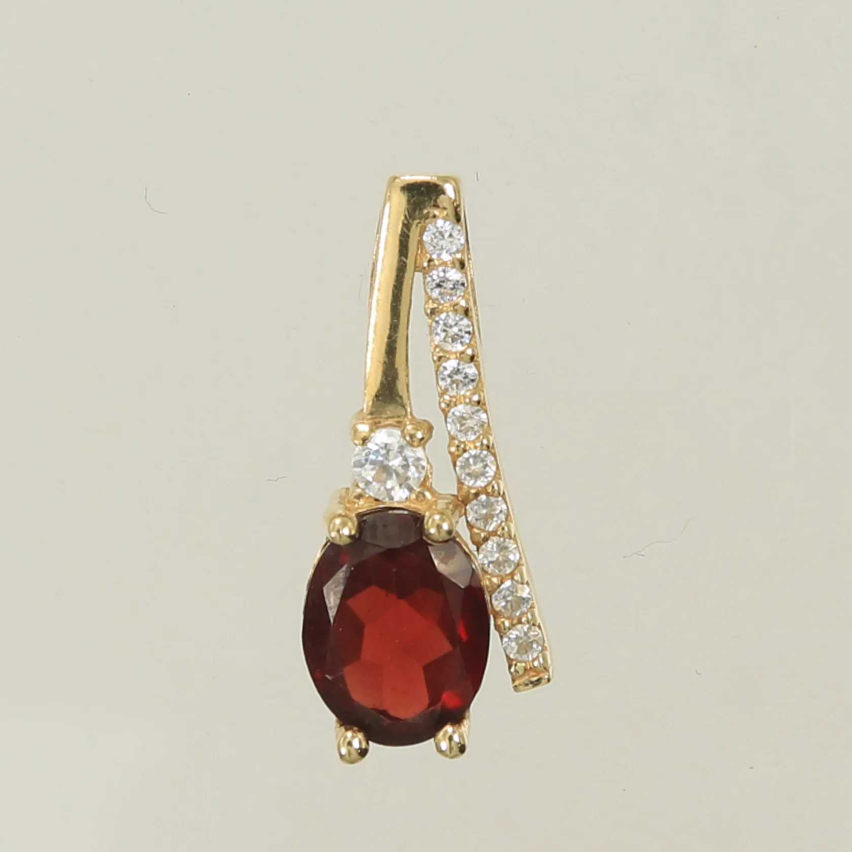 Hänge med röd och vita stenar, längd 20mm, bredd 8mm, 14K, 2,3g Vikt: 2,3 g.